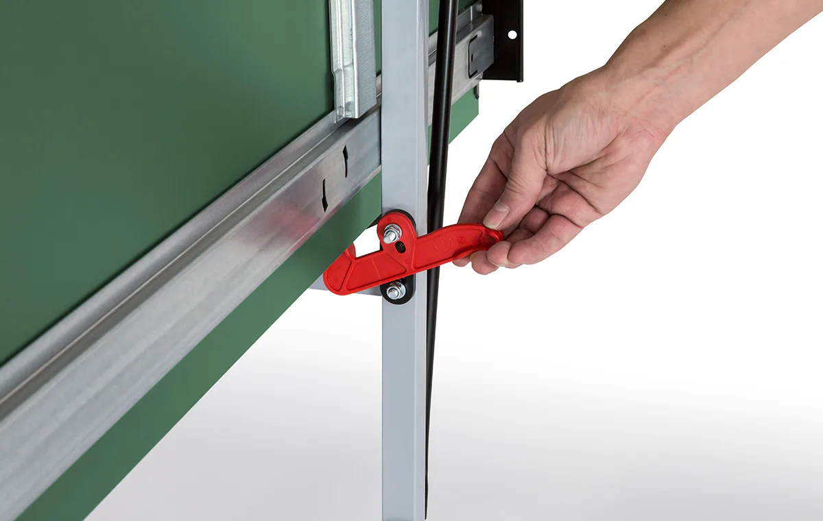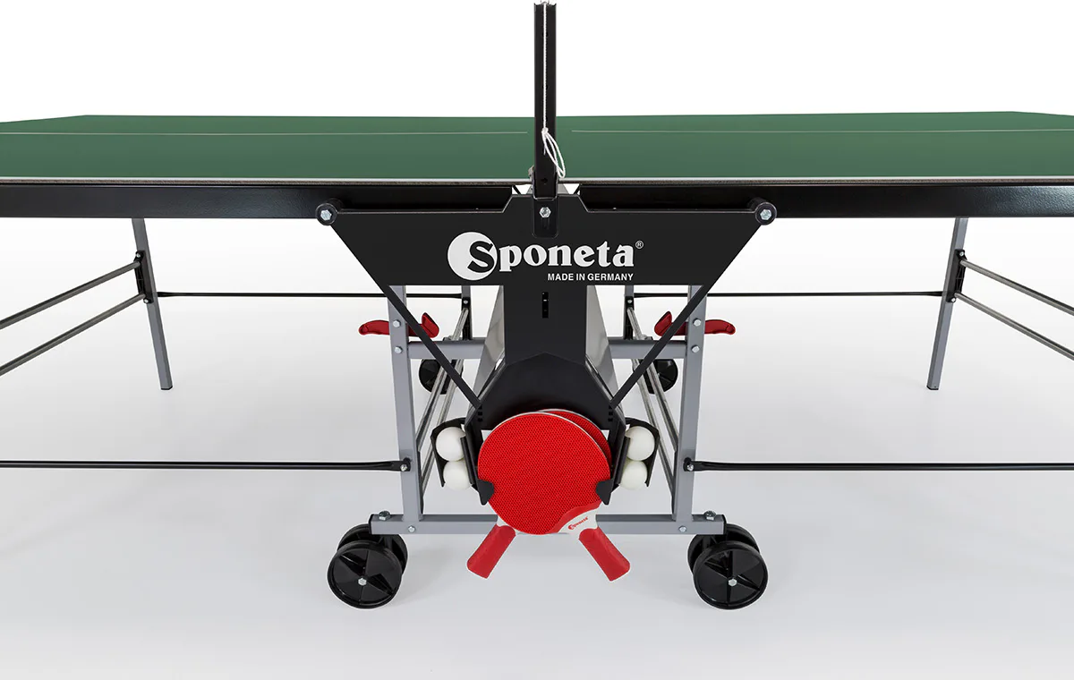 Stůl na stolní tenis Sponeta S3-46e je možné složit, aniž by bylo nutné demontovat držák na síťku se síťkou. Pevný rám z profilů 2,5 x 2,5 cm dává stolu velkou stabilitu rovnající se vnitřním stolům.