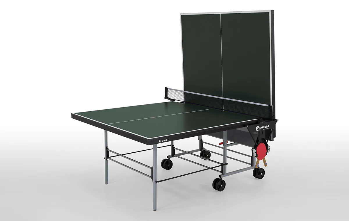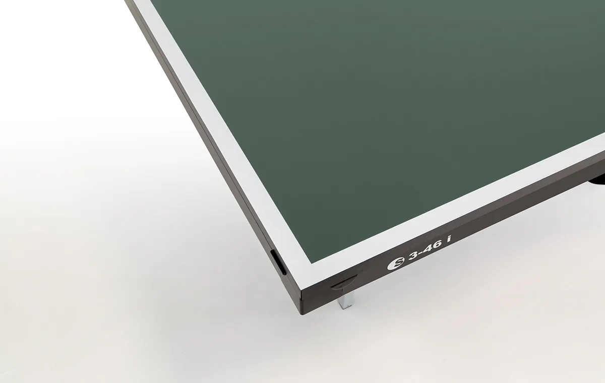 Pingpongový stůl Sponeta S3-46i je určený pro vnitřní použití. Má broušený povrch na 19 mm silné desce. Tato deska již zaručuje stálé vlastnosti pro rekreační hru na vyšší úrovni. Deska je vyztužená ocelovým rámem 36 mm, který stůl ještě dále zpevňuje. Nohy stolu jsou ocelové. Stůl je vyztužený kovovými táhly.