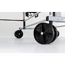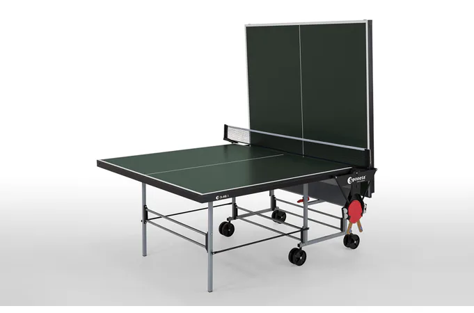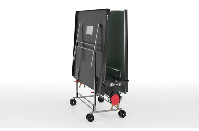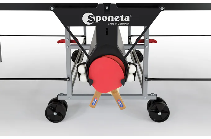 Vnitřní část stolu je opatřena čtyřmi kolečky na manipulaci ve složeném stavu. Uprostřed stolu je držák na pálky a na míčky. Síťka a držák na síťku je součástí vybavení stolu.