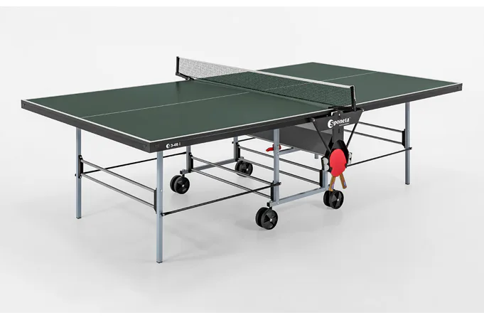 Pingpongový stůl Sponeta S3-46i je určený pro vnitřní použití. Má broušený povrch na 19 mm silné desce. Tato deska již zaručuje stálé vlastnosti pro rekreační hru na vyšší úrovni. Deska je vyztužená ocelovým rámem 36 mm, který stůl ještě dále zpevňuje. Nohy stolu jsou ocelové. Stůl je vyztužený kovovými táhly.