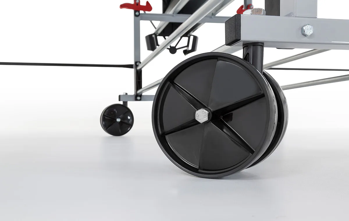 Kvalitní držák na síťku a síťka mají lepší parametry než má levnější model venkovního stolu řady S1. Obojí je součástí výrobku. Kolečka umožňující pojezd usnadňují manipulaci se stolem.
