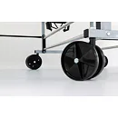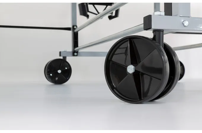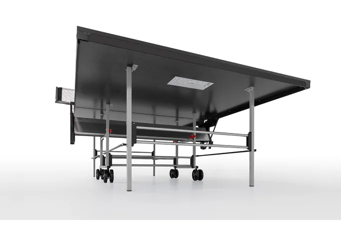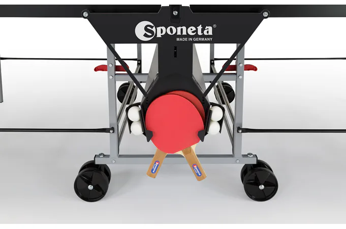 Vnitřní část stolu je opatřena čtyřmi kolečky na manipulaci ve složeném stavu. Uprostřed stolu je držák na pálky a na míčky. Síťka a držák na síťku je součástí vybavení stolu.