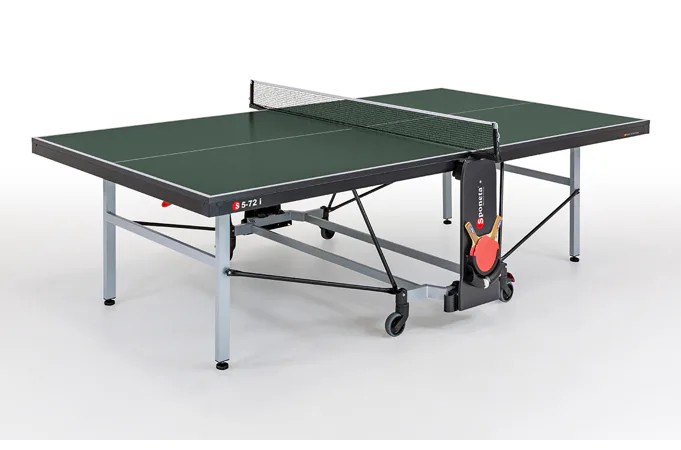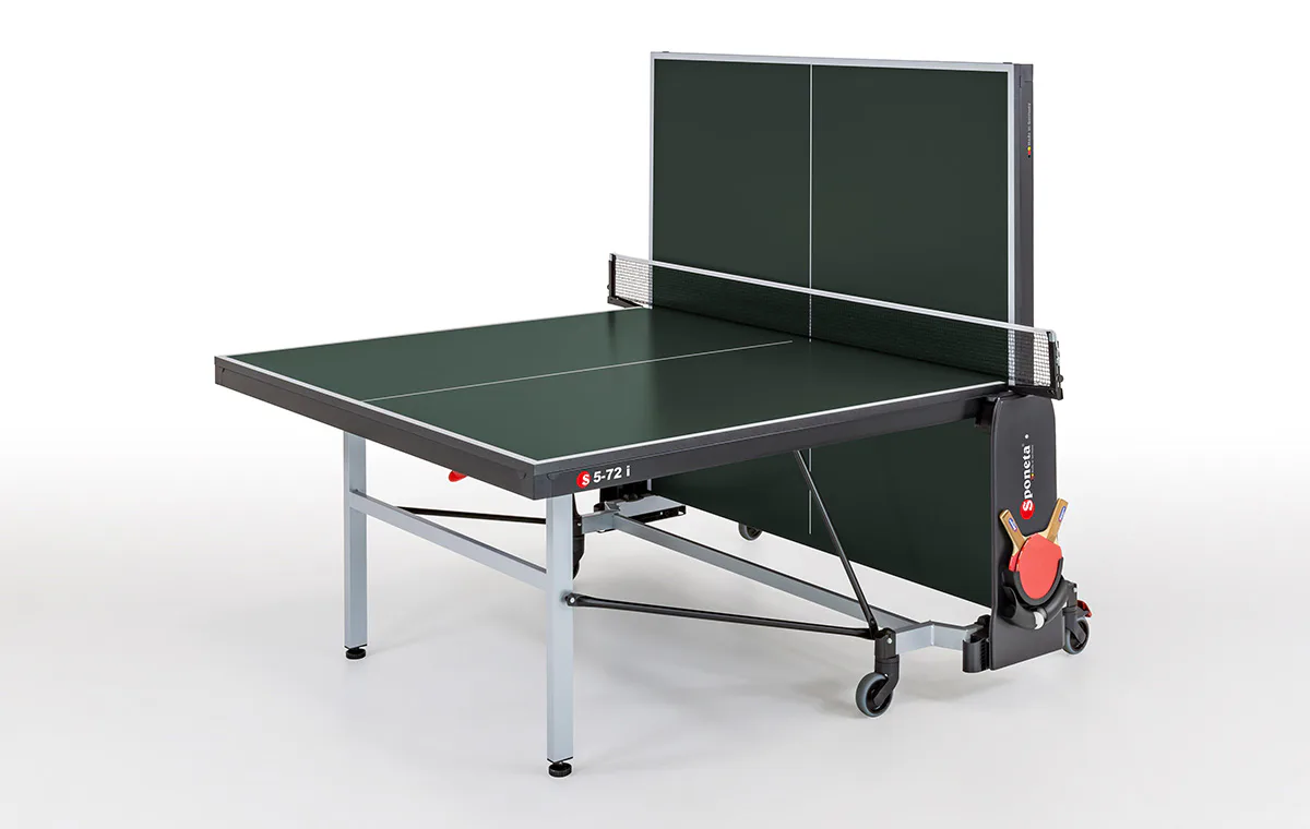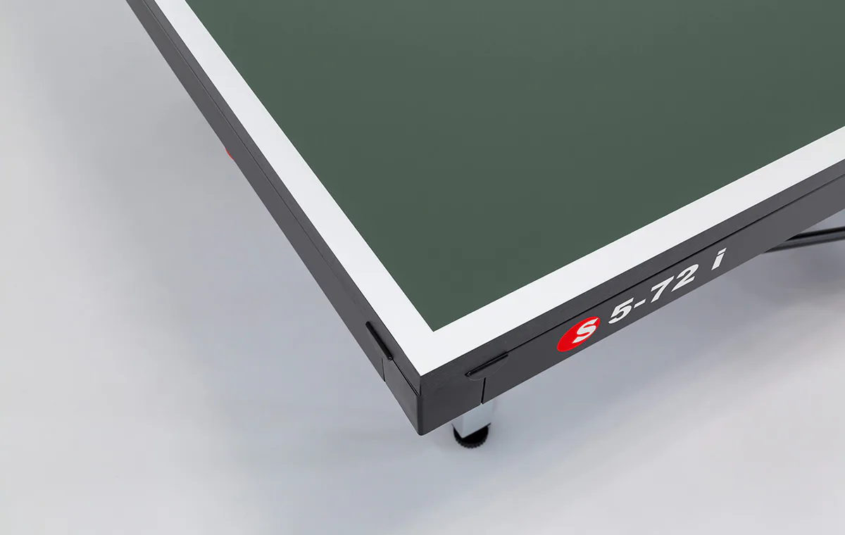 Pingpongový stůl Sponeta S5-72i je určený pro vnitřní použití. Má speciálně broušený povrch na 22 mm silné desce. Tato deska již zaručuje stálé vlastnosti pro závodní hru na vyšší úrovni. Deska je vyztužená ocelovým rámem 50 mm, který stůl ještě dále zpevňuje. Nohy stolu jsou z eloxovaného hliníku a mají seřizovací mechanismus na nastavení výšky a vyrovnání nerovností podlahy.