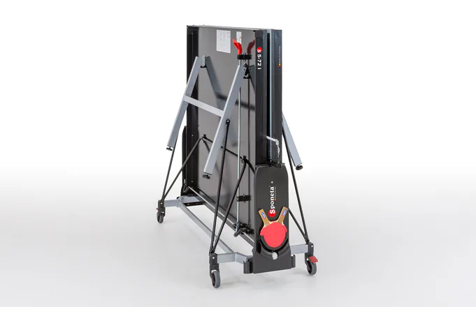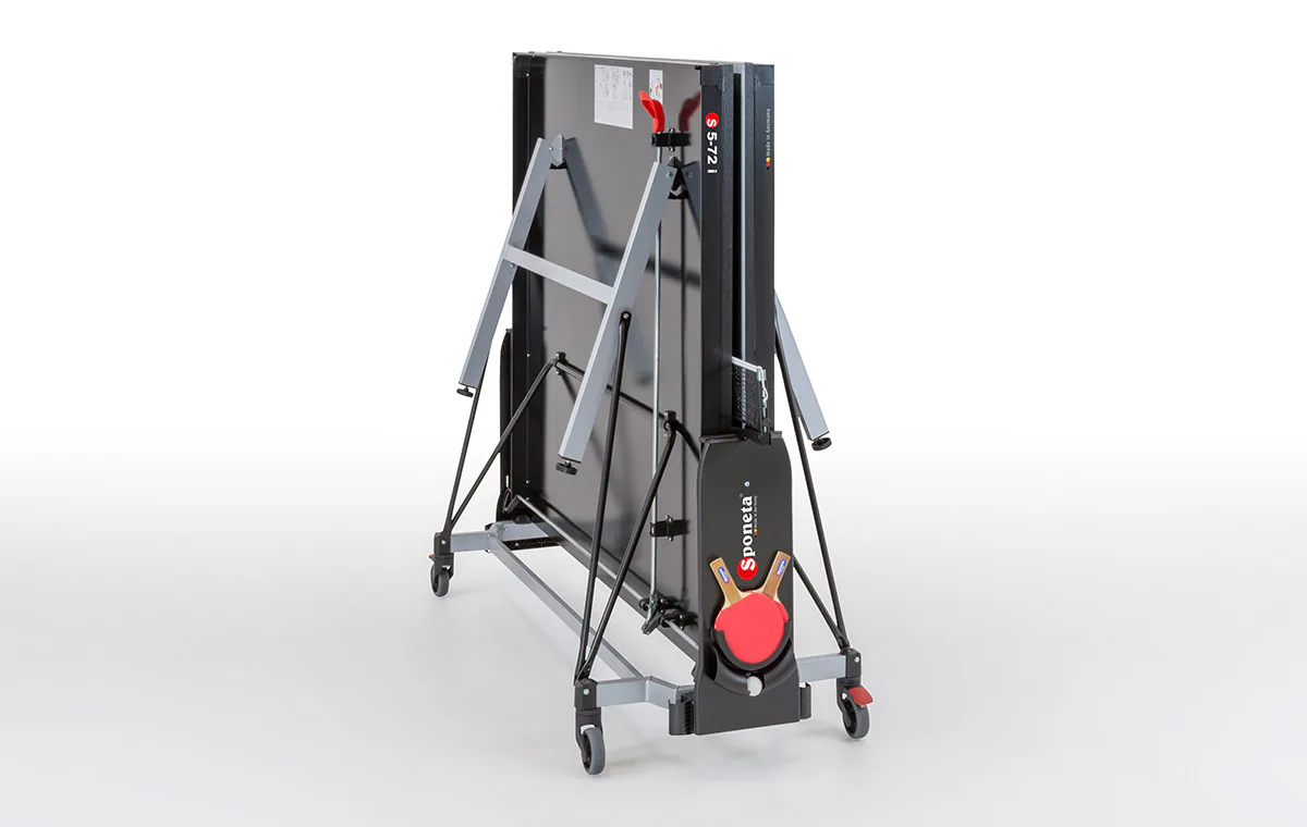 Pingpongový stůl Sponeta S5-72i je kvalitní vnitřní stůl určený pro soutěžní účely. Výhodou stolu Sponeta S5-72i je možnost lepší stability pro přesuny sbaleného stolu v manipulační poloze - desky jsou těsně u sebe a jsou na konstrukci uložené 10 cm nad zemí.