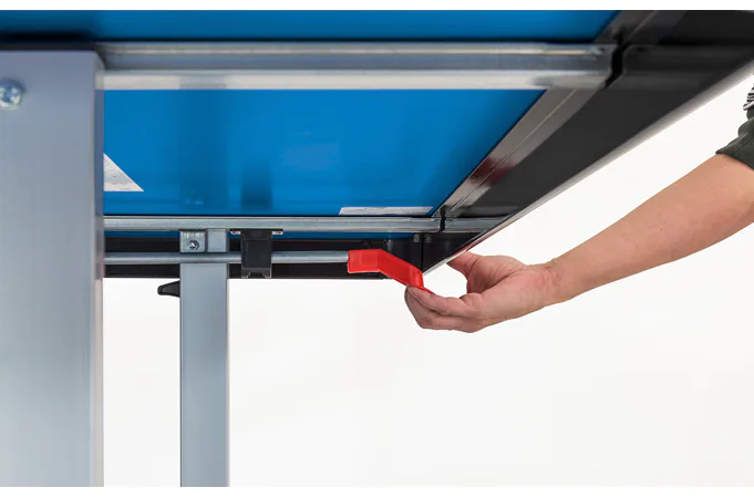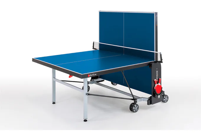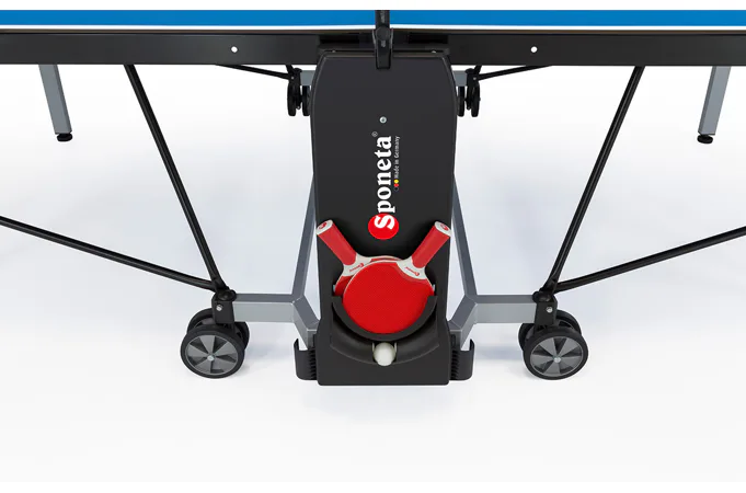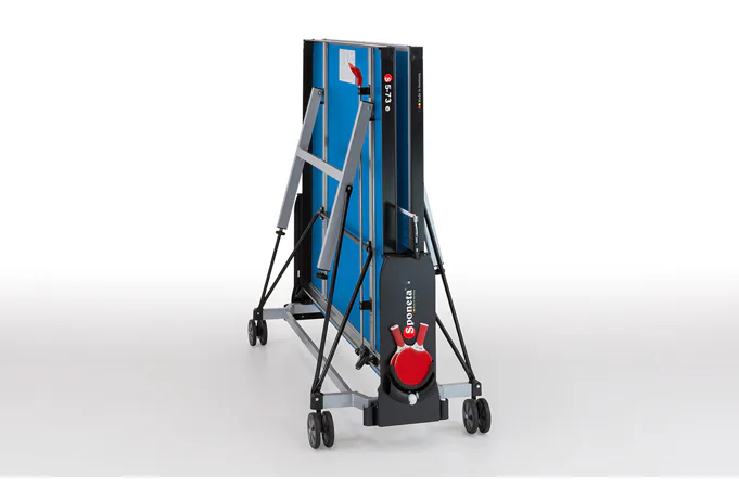 Stůl na stolní tenis Sponeta S5-73e je možné složit, aniž by bylo nutné demontovat držák na síťku se síťkou. Výhodou tohoto modelu je možnost sklápění desek jen z jedné strany a není potřeba stůl obcházet nebo mít k sobě ještě další pomoc.