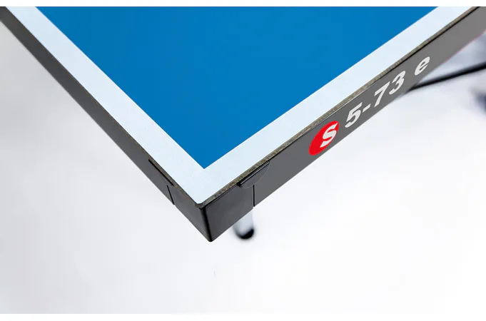 Stůl na stolní tenis Sponeta S5-73e, venkovní. Pozinkovaný rám spolu se 6 mm silnou plastovou deskou z melaminu, která má vlastnosti klasické dřevěné desky, umožňují stálé umístění stolu venku (přesto doporučujeme pro prodloužení životnosti nechávat stůl venku pouze od jara do podzimu - sníh a led mohou stůl mechanicky poškodit) bez ohledu na momentální klimatické podmínky.