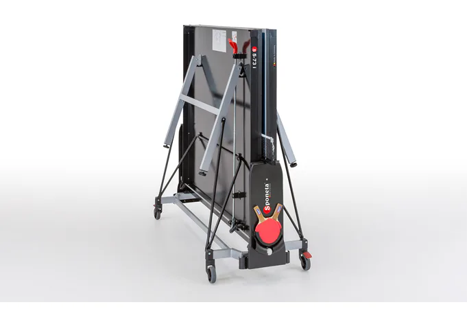Pingpongový stůl Sponeta S5-73i je kvalitní vnitřní stůl určený pro soutěžní účely. Výhodou stolu Sponeta S5-73i je možnost lepší stability pro přesuny sbaleného stolu v manipulační poloze - desky jsou těsně u sebe a jsou na konstrukci uložené 10 cm nad zemí.