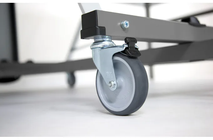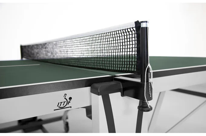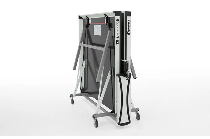 Vnitřní část stolu SPONETA S7-62i je opatřena čtyřmi kolečky na manipulaci ve složeném stavu, 2 kolečka mají aretaci proti pohybu. Uprostřed stolu je držák na míčky.