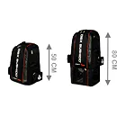 Batoh je vyroben z pevného polyesteru a vnější rozměry jsou 45 x 27 x 50 centimetrů, tato velikost pojme veškerou výbavu potřebnou pro trénink. Produkt je vybaven celkem 8-mi oddíly, velká hlavní komora o objemu 35 litrů je skryta pod čelním panelem, který je po stranách vyroben ze síťoviny a po odepnutí jde celý odklopit pro pohodlný přístup, na předním panelu se nachází kapsa, která je určena například pro vlhký ručník. 2 boční komory jsou určeny na drobnosti jako peněženka, nebo klíče.