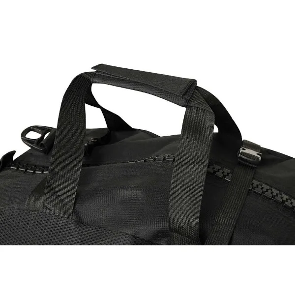 Taška je vyrobena z pevného polyesteru a vnější rozměry jsou 30 x 60 x 40 centimetrů, tato velikost tedy pojme veškerou výbavu potřebnou pro trénink. Produkt je vybaven celkem 4-mi komorami, velká hlavní komora se skrývá pod XXL zipem, 2 boční komory jsou určeny na drobnosti jako peněženka, telefon, nebo klíče a spodní komora ukrývá popruhy a zároveň (pokud tašku nosíme jako batoh) slouží jako kapsa na notebook nebo dokumenty.