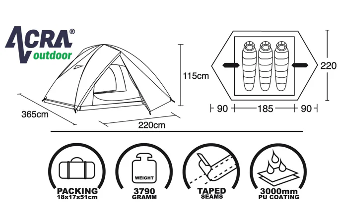Stan BROTHER ST06 pro 3 osoby dvouplášťová kopule s předním a zadním vchodem (zavěšená ložnice a oddělený vrchní plášť). Ideální parťák pro letní camping a pohodlné spaní.