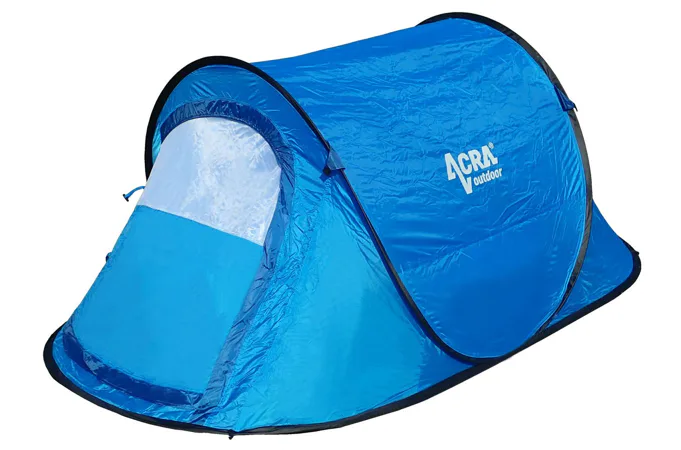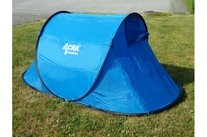 Stan SAMOSTAVĚCÍ pro 2 osoby. Jedná se o velmi skladný a jednoduše postavitelný stan. Navléknuté sklolaminátové pruty po vyndání z obalu stan kompletně postaví. Pak už jen stačí stan upevnit kolíky k zemi a dopnout plášť stanu kotvícími šňůrami kolem dokola.