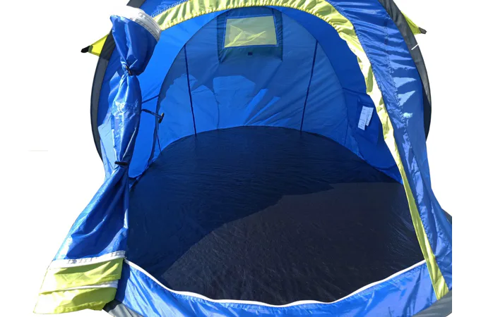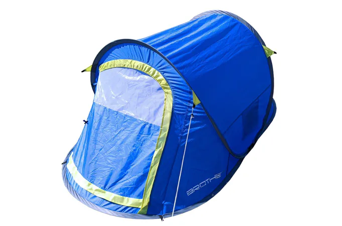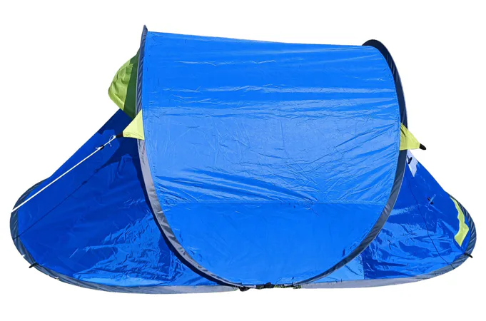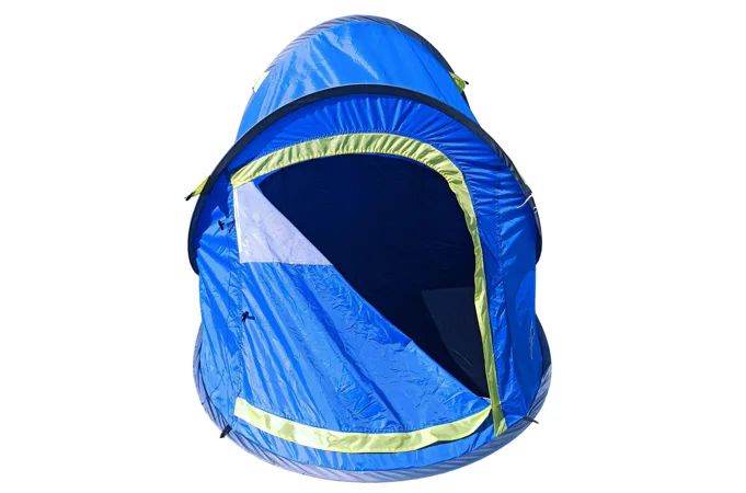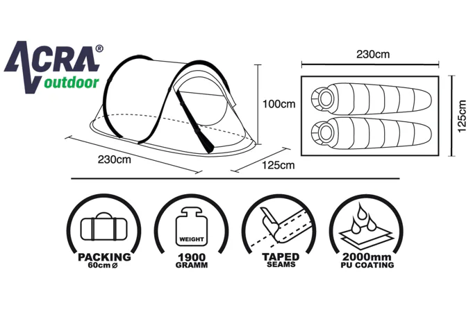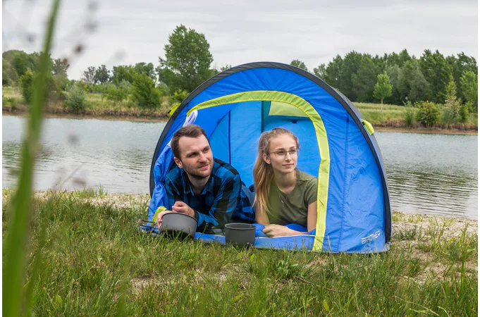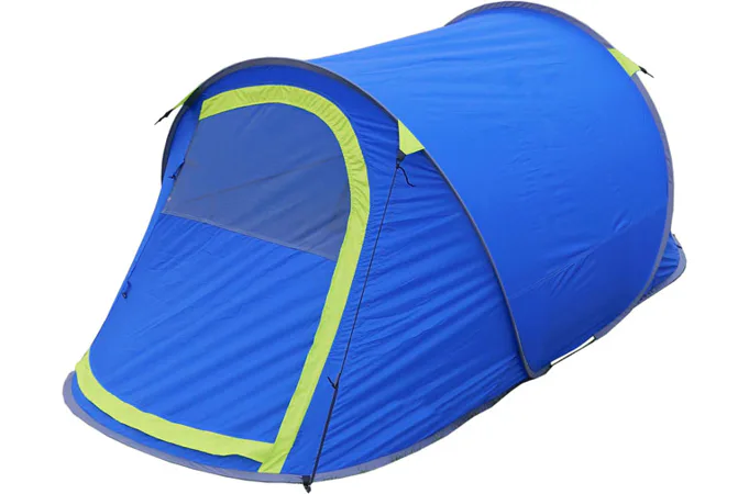 Stan SAMOSTAVĚCÍ pro 2 osoby. Jedná se o velmi skladný a jednoduše postavitelný stan. Navléknuté sklolaminátové pruty po vyndání z obalu stan kompletně postaví. Pak už jen stačí stan upevnit kolíky k zemi a dopnout plášť stanu kotvícími šňůrami kolem dokola.