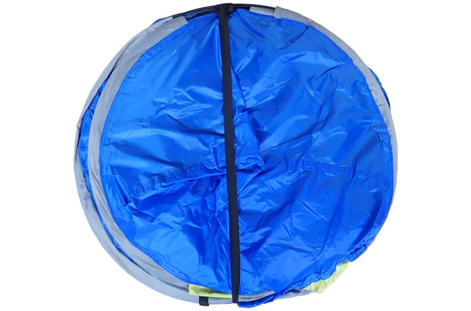 Stan stačí vyndat z obalu, hodit na zem a on se sám postaví díky pružným sklolaminátovým nosným prutům. Demontáž je dobré provádět podle návodu, aby nedošlo k polámání sklolaminátových průtů.