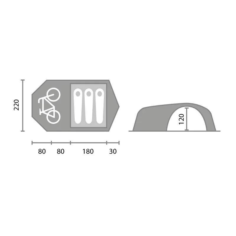 Dvouplášťový stan YATE DACOTA pro 2-3 osoby se samonosnou vnitřní konstrukcí a předsíní. Vhodný pro kempování a cyklistiku. Velmi jednoduchá stavba pomocí dvou zkřížených prutů nad hlavní místností a jednoho prutu v předsíni. Pruty a kanálky jsou barevně označené pro jednodušší stavbu.
