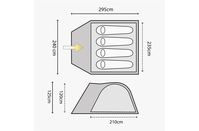 Stan YATE HIGHLANDER Juniper 4 poskytuje dostatek místa pro osoby i zavazadla. Velký vchod a vnitřní výška 120 cm poskytuje dostatek pohodlí. Samonosná konstrukce zajišťuje dobrou stabilitu ve větru. Vhodný pro turistiku a kempink.