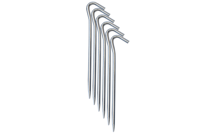Sada 6 kusů stanových hliníkových kolíků. Kolíky jsou vyrobené z odolného hliníku a jsou dlouhé 18,5 cm.