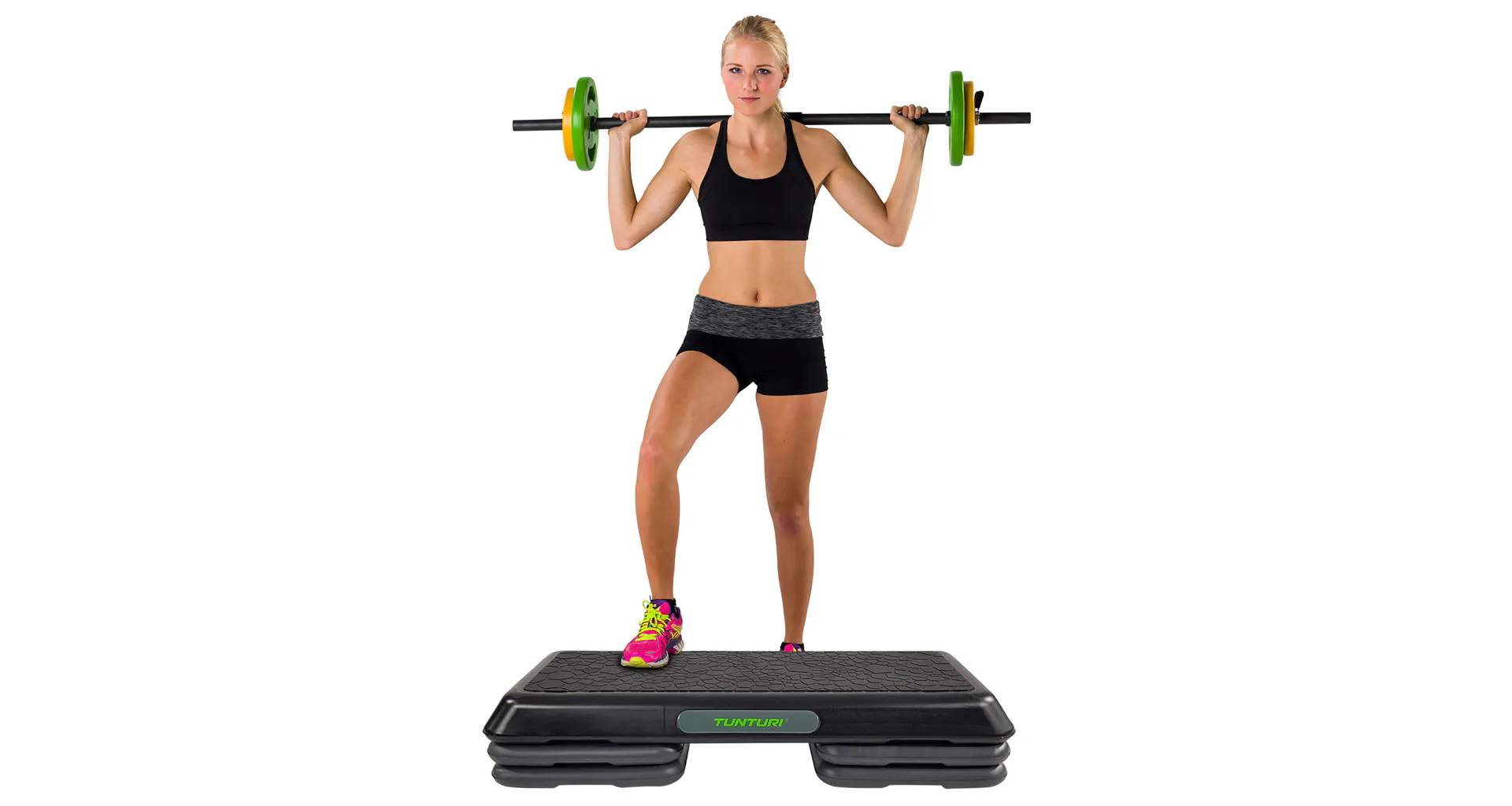 Step na aerobic TUNTURI Aerobic Power Step je nastavitelný můstek pro aerobic i další cvičení. Možnost nastavení je do tří výšek: 10/15/20 cm. Díky tomu si můžete určit obtížnost cvičení. Změnu výšky lze provést snadno za pomoci dodávaných nastavovacích bloků. Velikost stepu je 108 x 41 cm, a proto je vhodný nejen na aerobikové kroky, ale také pro pohodlné provádění strečingových cviků nebo posilování vleže zaměřené na svaly nohou, břicha a hýždí.