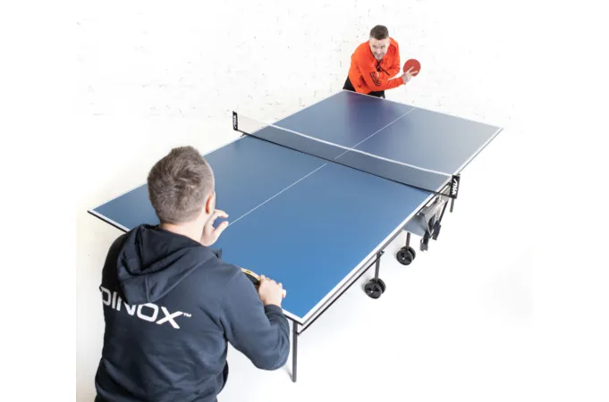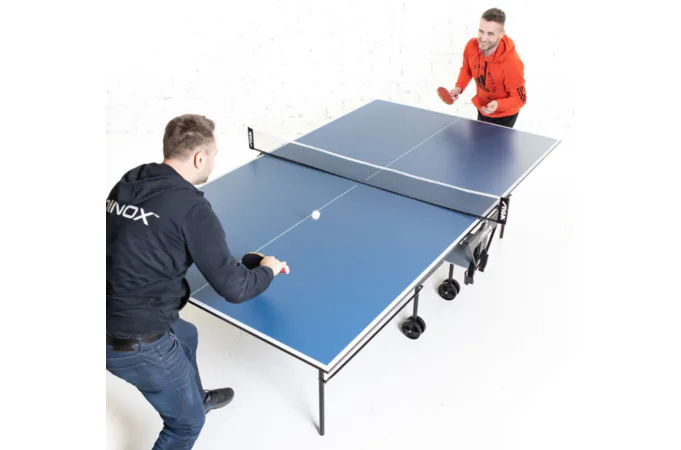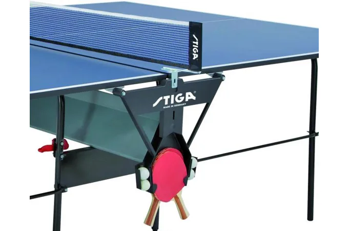 Stůl je dodáván včetně síťky a držáku na pálky a míčky.