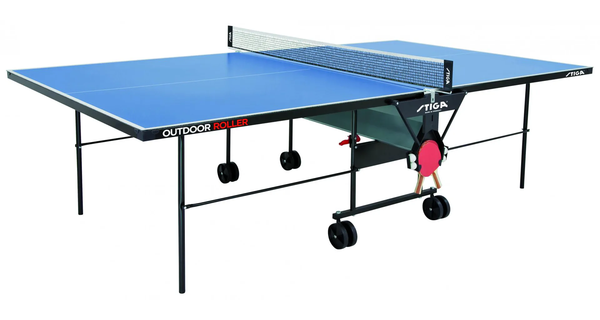 Stiga Outdoor Roller je kvalitní a cenově dostupný pingpongový stůl pro venkovní použití. Silná speciální melaminová deska je teplu, dešti, vlhku i zimě dokonale odolná a zajišťuje perfektní a pravidelný odskok míčku. Vlastnosti tohoto stolu nadchnou každého rekreačního, ale i aktivního hráče pingpongu.