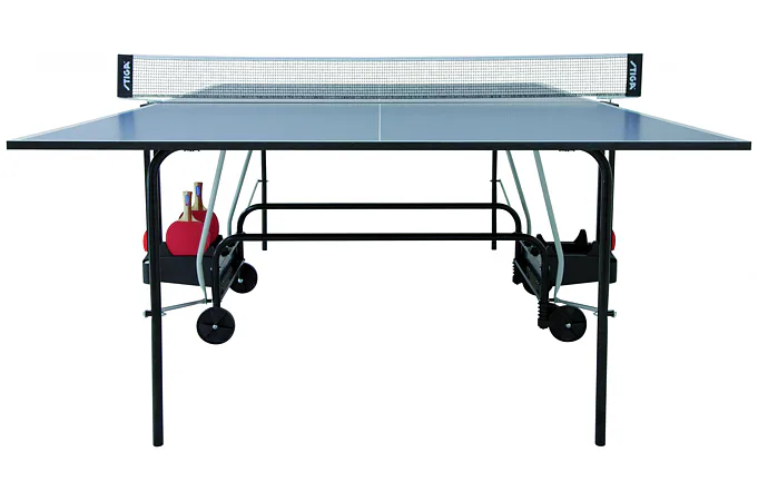Stůl je dodáván včetně síťky a držáku na pálky a míčky.