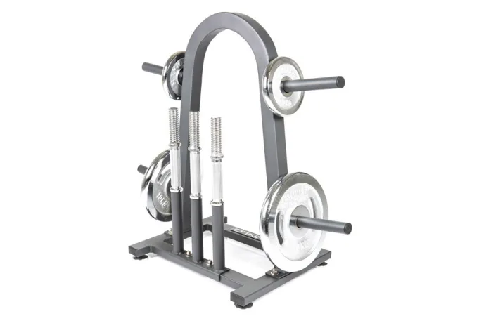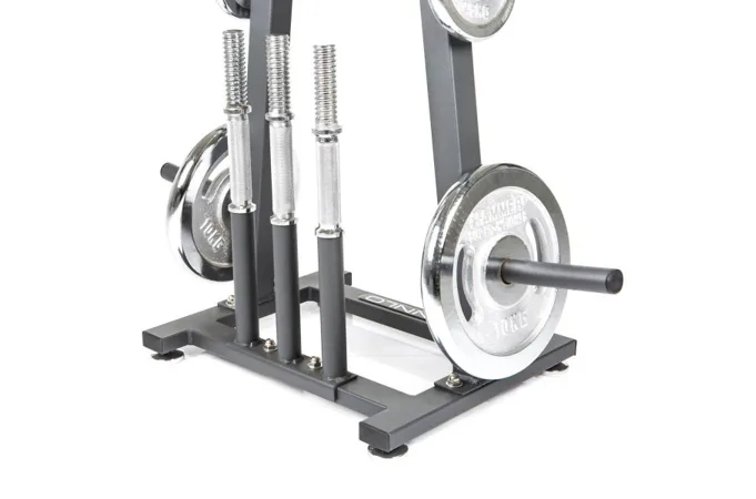 Stojan FINNLO 3917 Weight Disc Rack je velmi stabilní stojan na kotouče a osy. Nabízí 4 oddělené trny na odkládání kotoučů a 3 oddělená místa na uložení činkových os, ať už krátkých pro jednoručky či dlouhých tyčí. Odkládací trny pro kotouče jsou velmi pevné a jsou opatřeny gumovým dorazem pro snadné odkládní bez zbytečného rizika poškození kotoučů či stojanu.