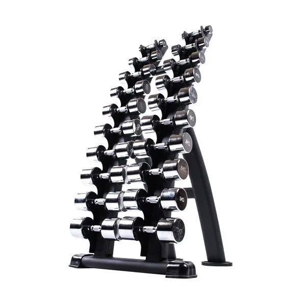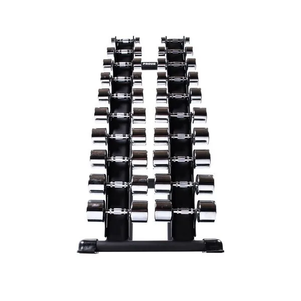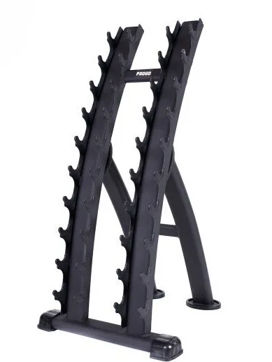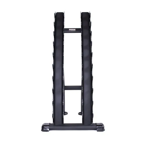 Svislý stojan na 10 párů činek od značky PROUD najde uplatnění v každé profesionální posilovně. Robustní, ocelová konstrukce má formu dvou sloupů s háky, které jsou opatřeny plastovými krytkami. Tyto krytky slouží jako ochrana stojanu i činky před poškozením.