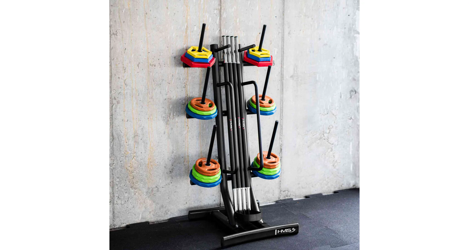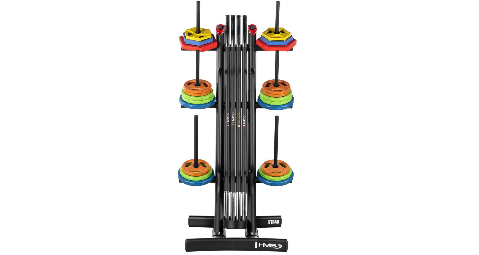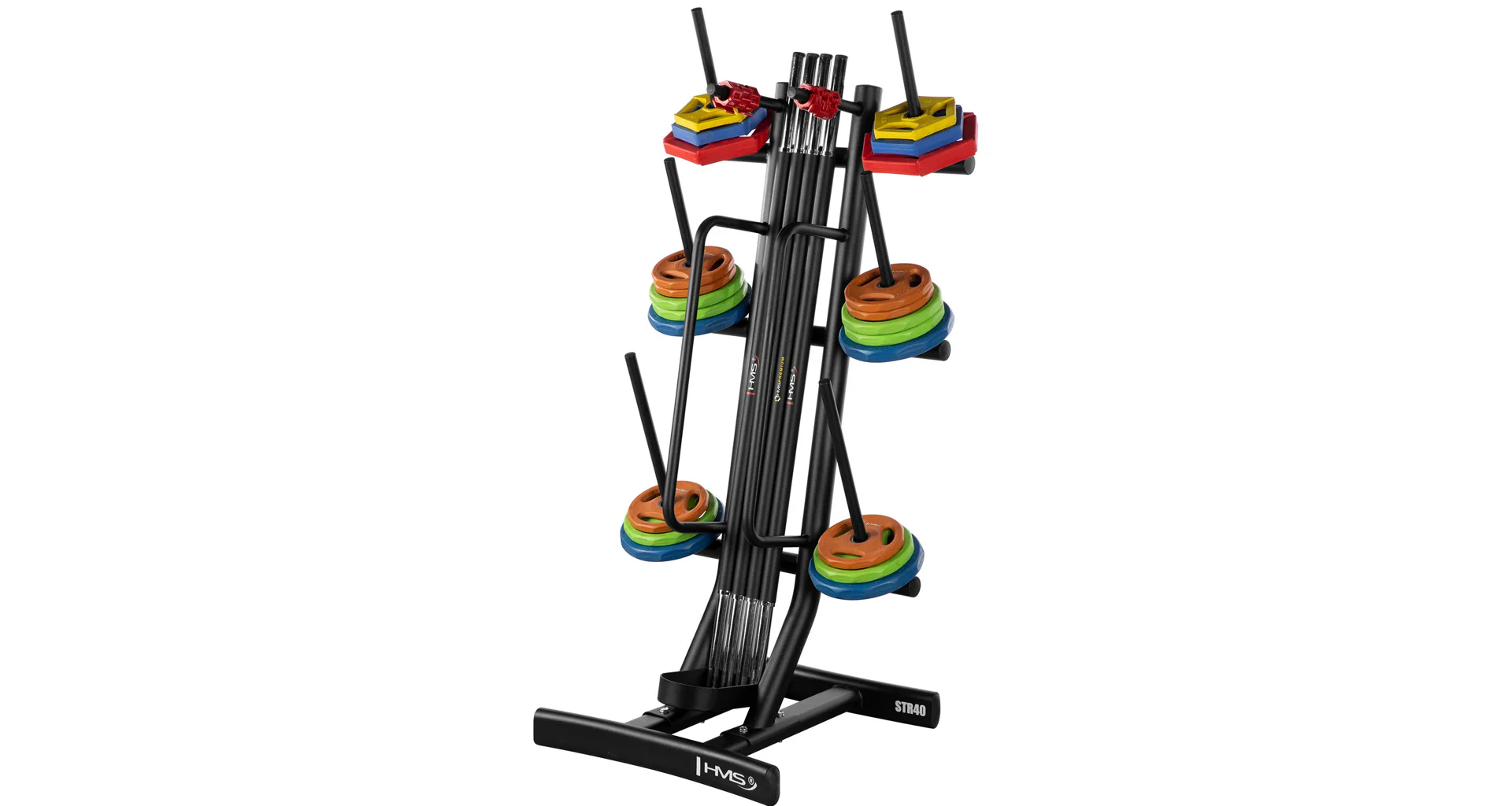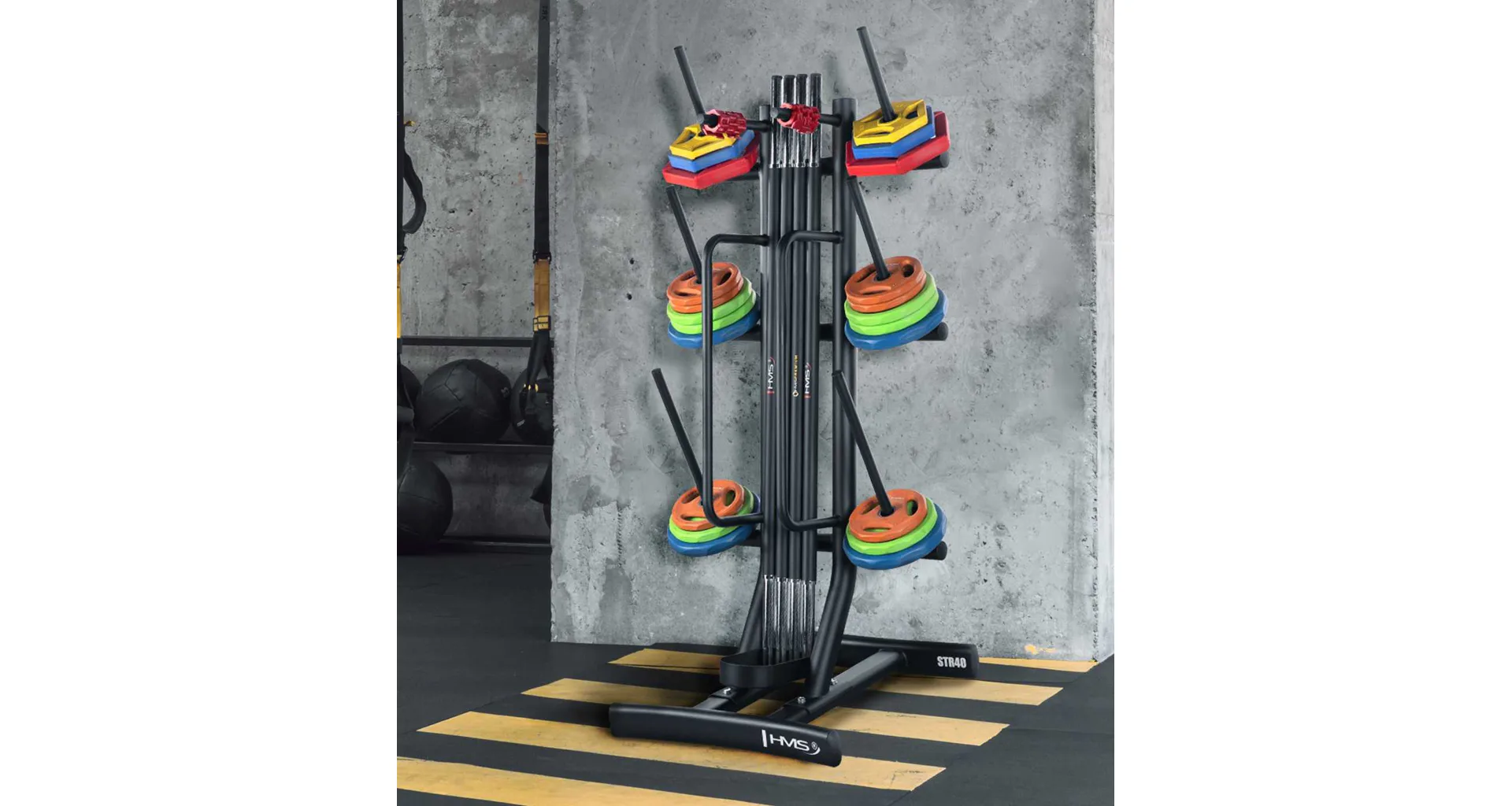 HMS STR40 je funkční tréninkový stojan, který pomáhá s organizací prostoru uložením kotoučů, os a příslušenství pro trénink Body Pump. Díky maximální nosnosti 280 kg a promyšlené konstrukci je ideální volbou pro fitness centra i domácí posilovny.