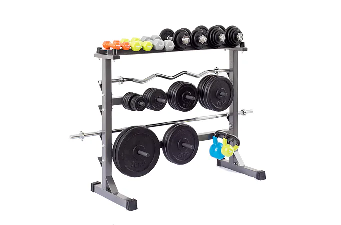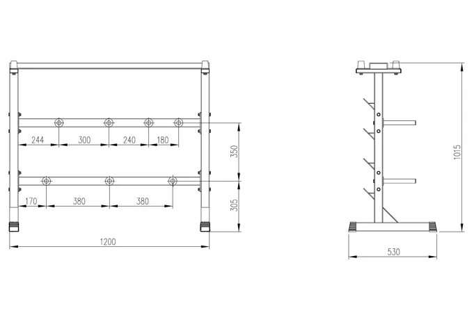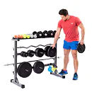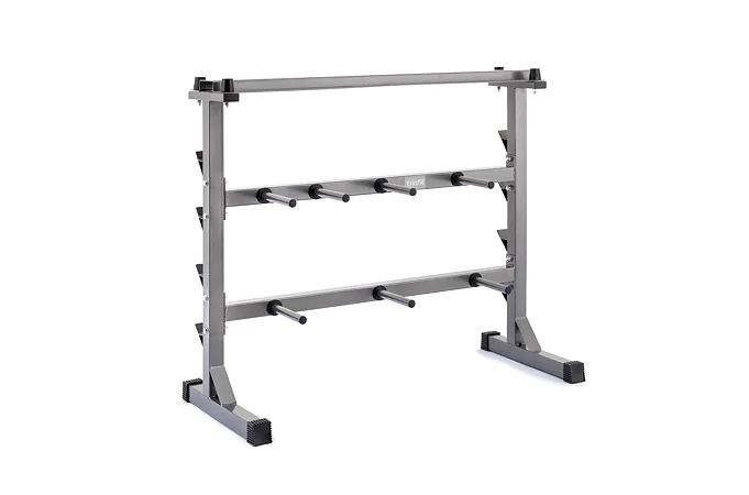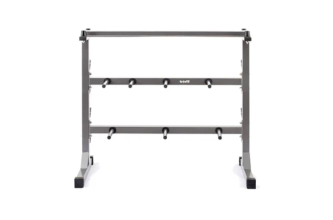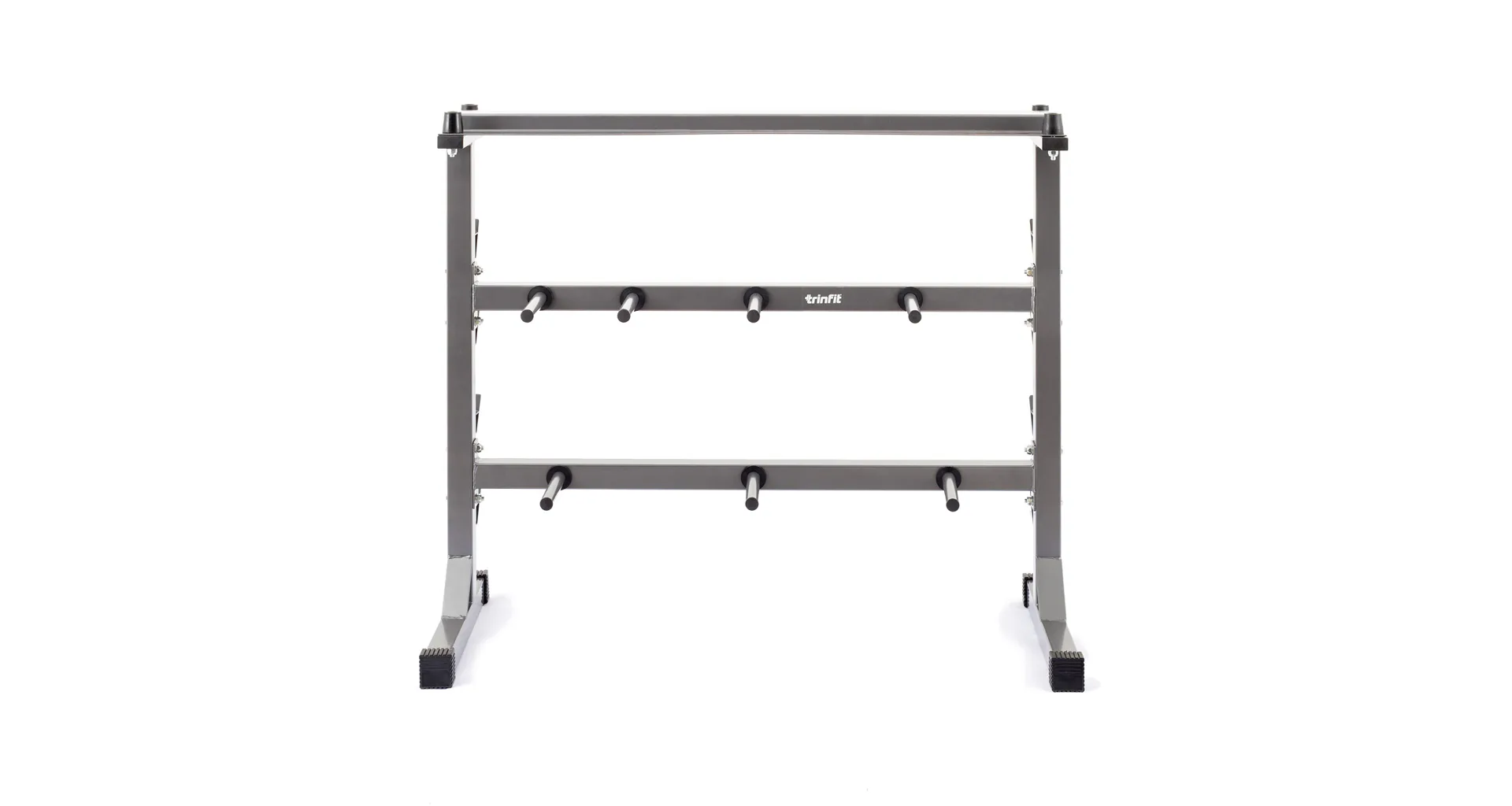 Odkládací stojan na činky, kotouče a osy TRINFIT DUMBBELL RACK je dokonalé řešení pro uložení vašich činek. Stojan umožňuje bezpečné uložení jednoručních činek, kotoučů a velkých činkových os. Masivní rámová konstrukce z jeklu 50x50x1,5 mm a kvalitní povrchová úprava vypalovaným lakem zaručují dlouhou životnost stojanu. Díky kvalitnímu zpracování a materiálům lze stojan využít v domácím i komerčním prostředí.