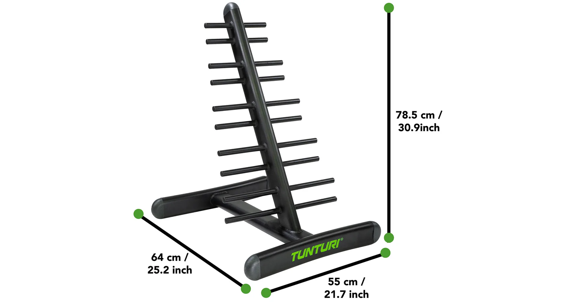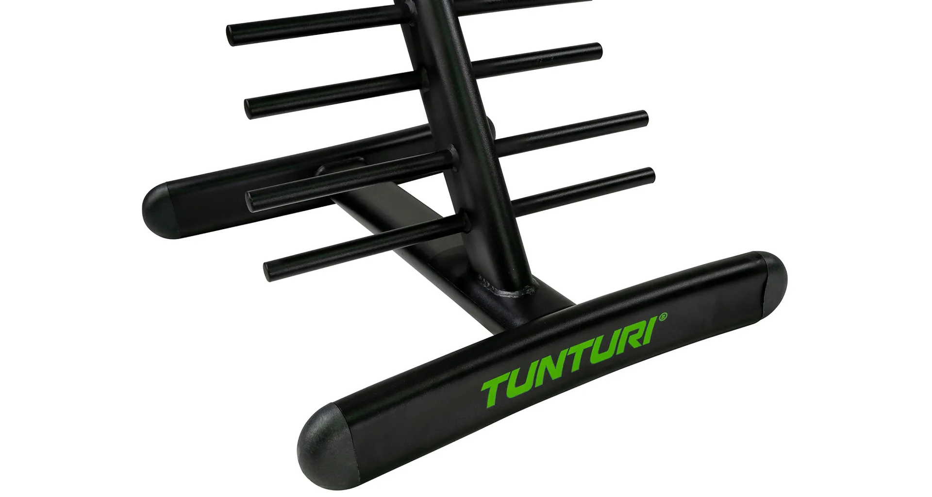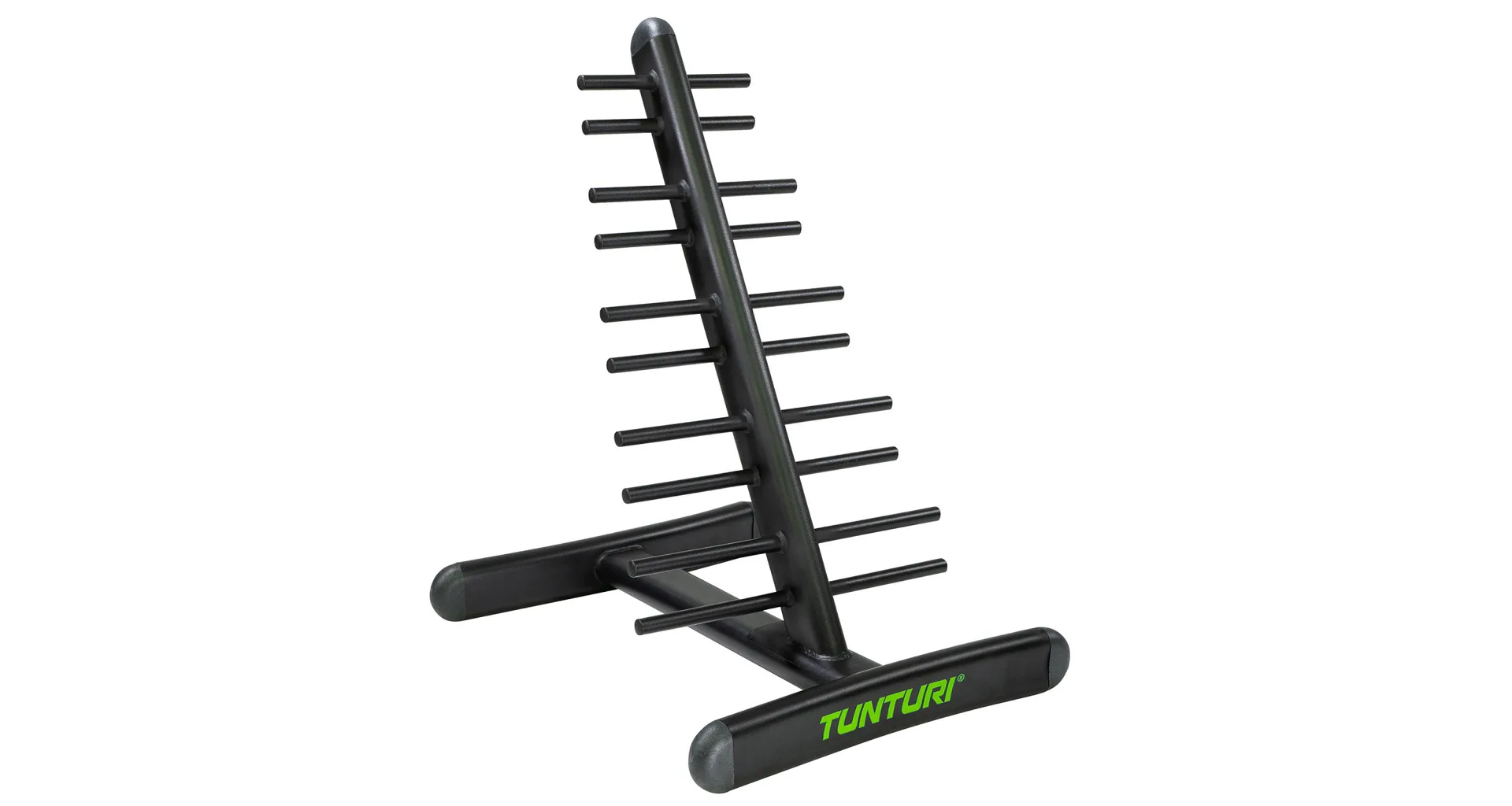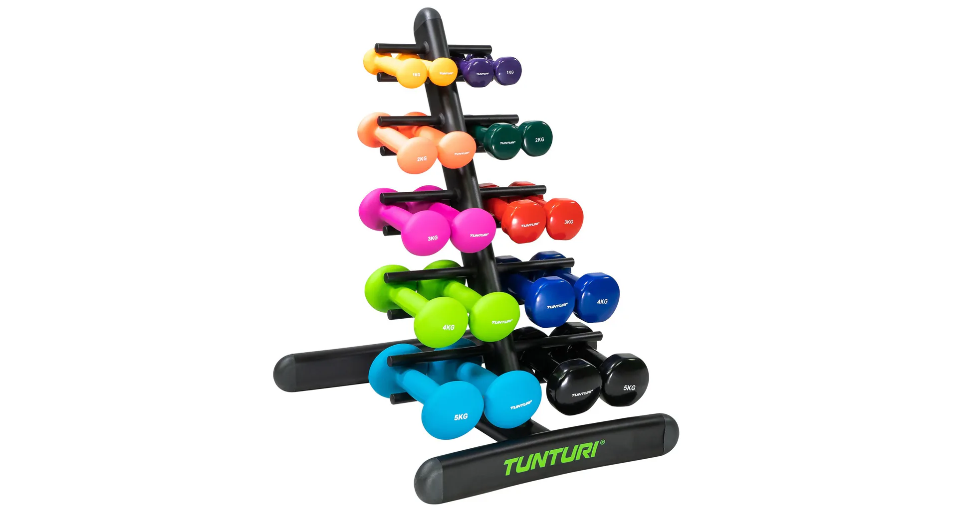 Stabilní a robustní stojan na činky od značky Tunturi pojme až 10 párů vinylových nebo neoprenových činek. Je vyroben z kvalitní oceli a opatřen práškovým nástřikem, který zabrání poškození stojanu i činek.