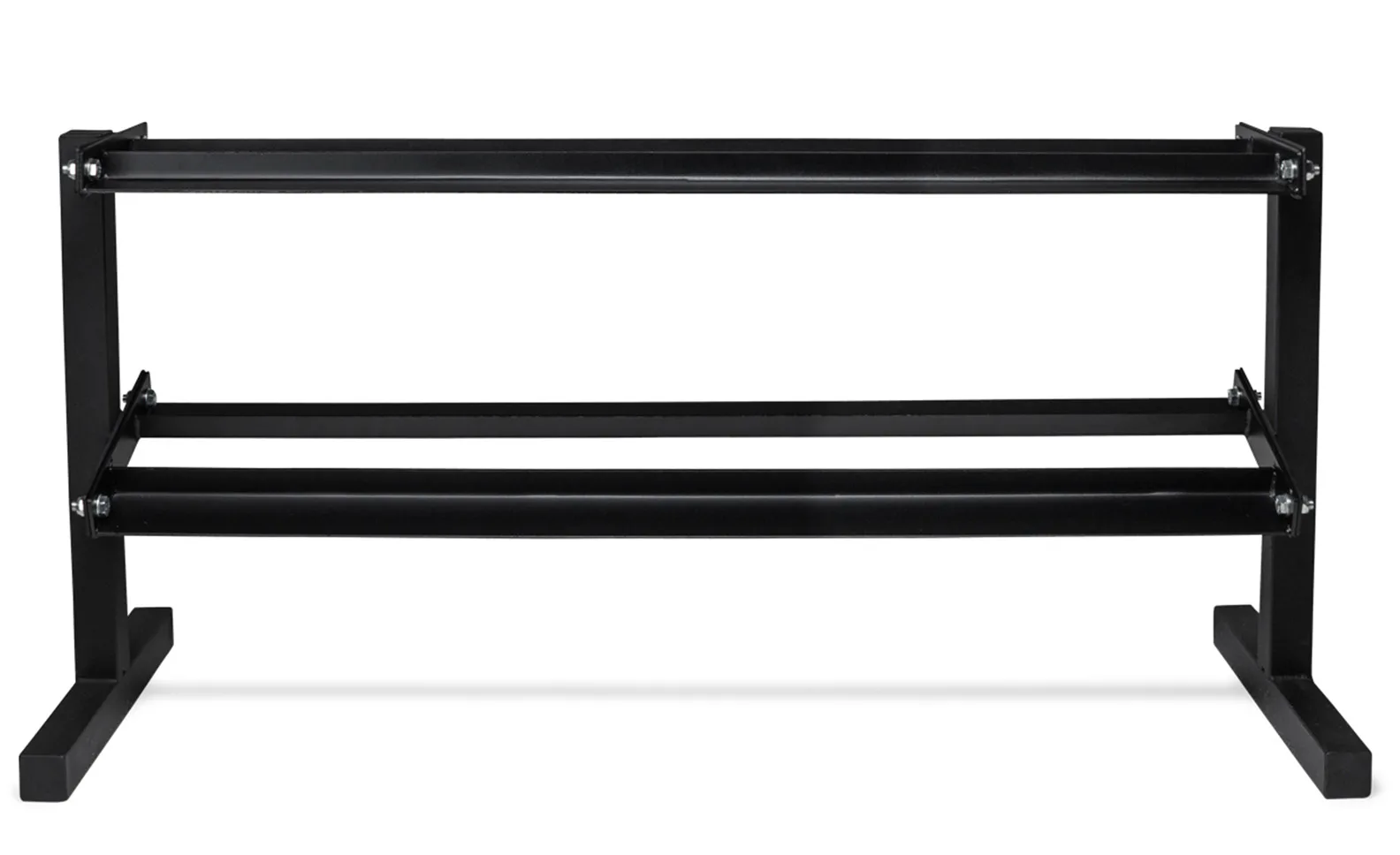 VIRTUFIT Dumbbell Rack Pro Double zajistí, že vaše posilovna zůstane čistá, organizovaná a především bezpečná. Tento stojan má, jak název napovídá, 2 police, na které lze umístit činky.