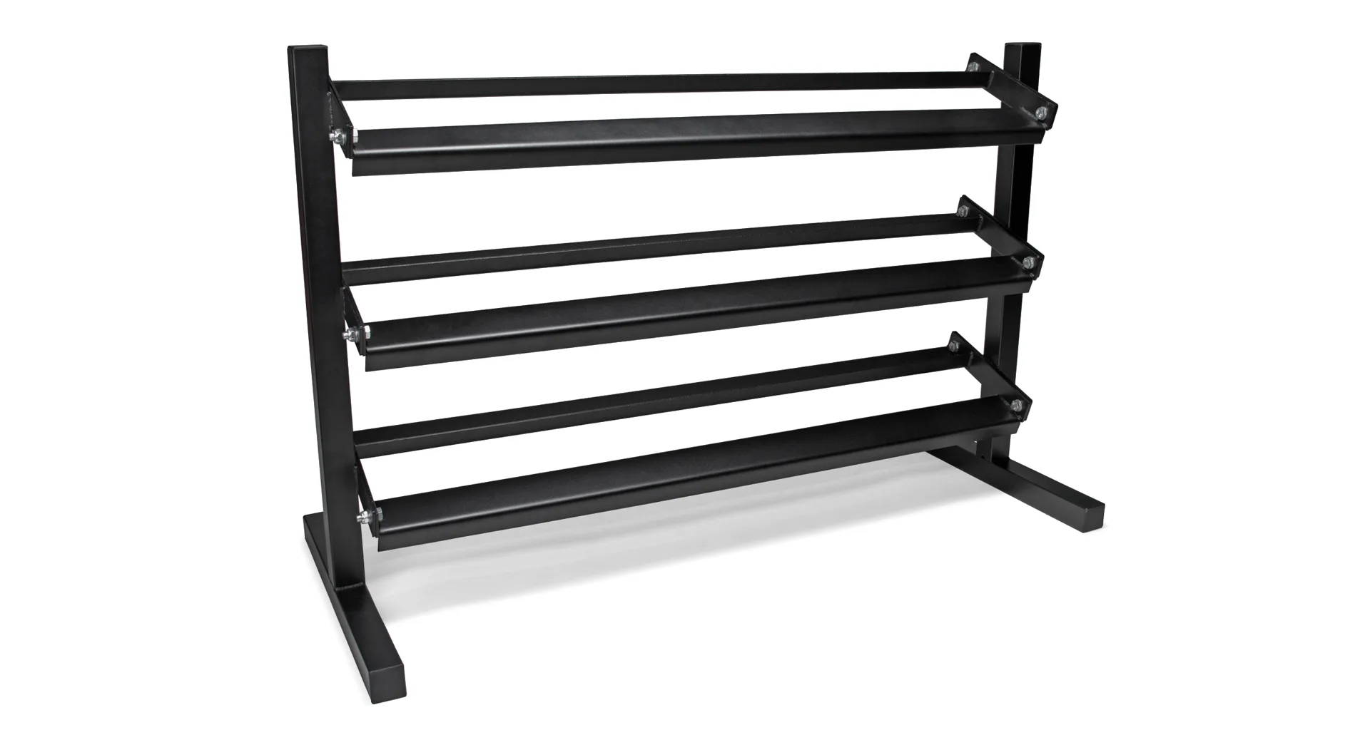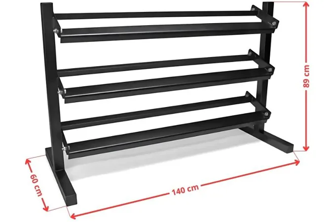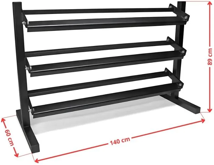 VIRTUFIT Dumbbell Rack Pro Triple zajistí, že vaše posilovna zůstane čistá, organizovaná a především bezpečná. Tento stojan má, jak název napovídá, 3 police, na které lze umístit činky.
