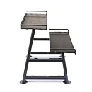 Profesionální designový stojan na Kettlebell robusní konstrukce určený pro komerční, klubové i domácí využití. Stojan nabízí bezpečné a pohodlné uložení až pro 15 kettlebell. Ty jsou uloženy ve dvou řadách, každá police je dostatečně velká (rozměr 118 x 32 cm) a opatřená odolnou profilovanou gumou o tloušťce 4 mm, která snižuje hluk při manipulaci se závažím a zároveň chrání jak samotný stojan, tak i kettlebelly. Stojan je vyroben z oválných profilů 80 x 40 mm a je opatřen kvalitním vypalovaným lakem.