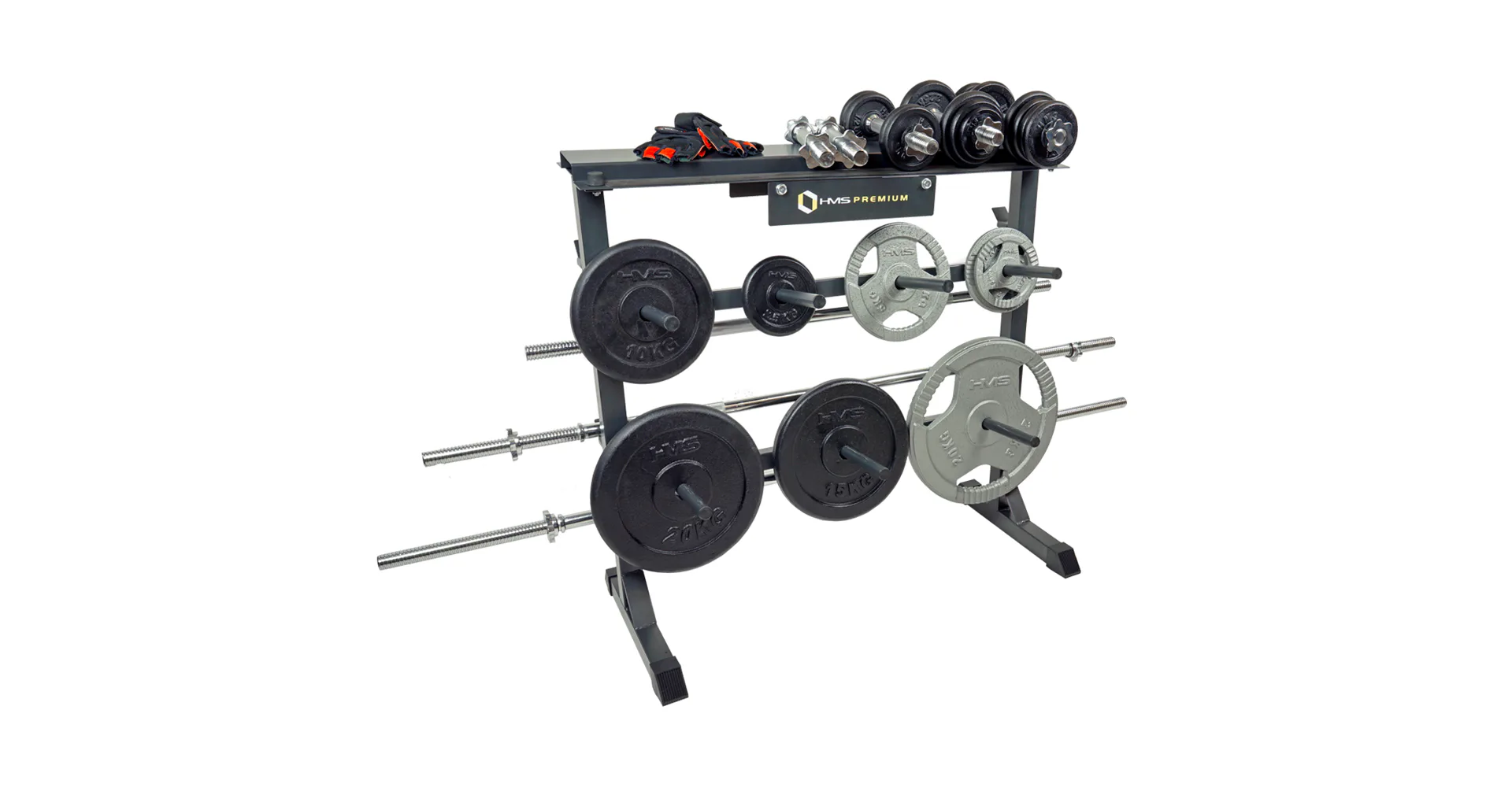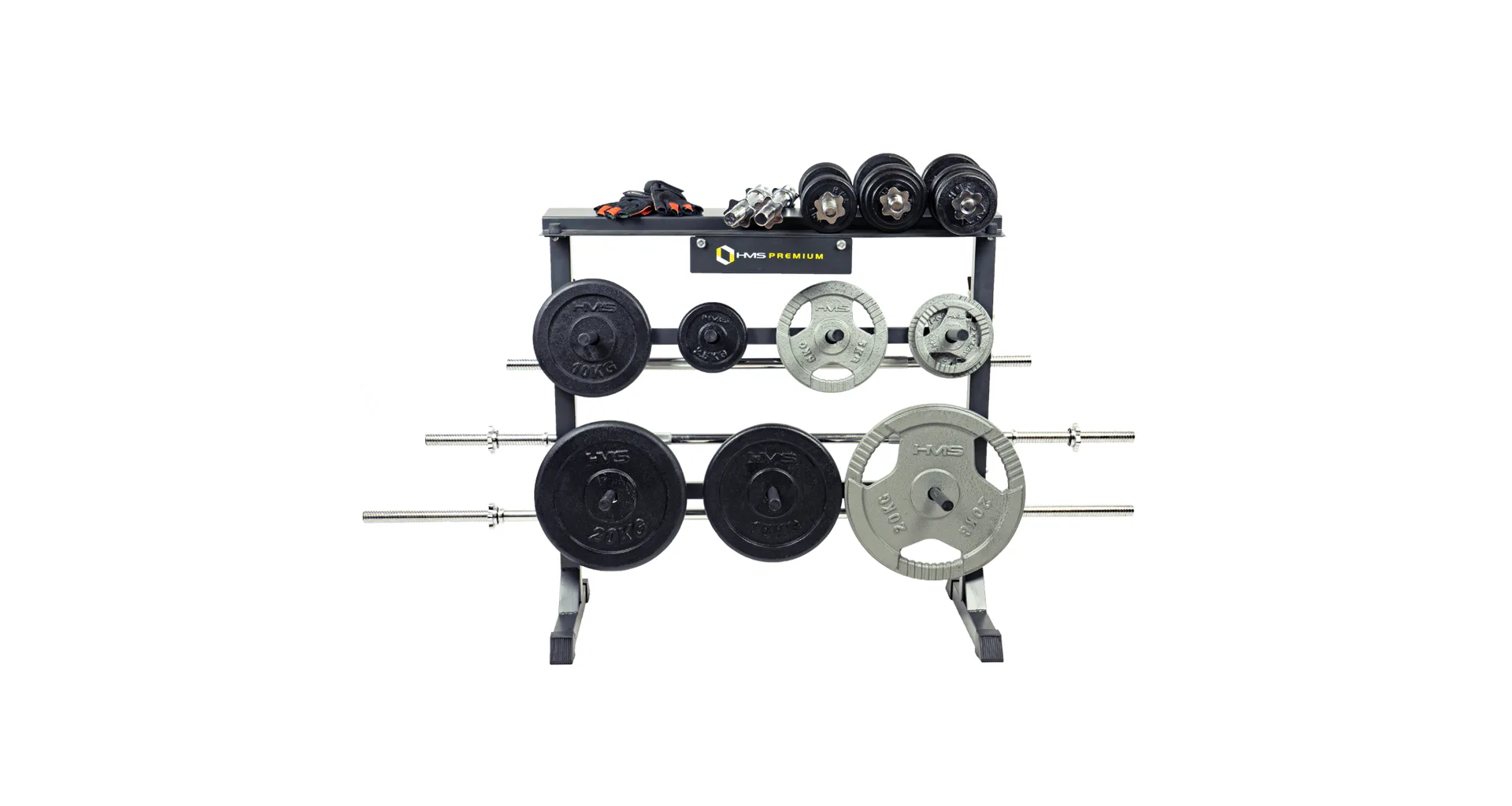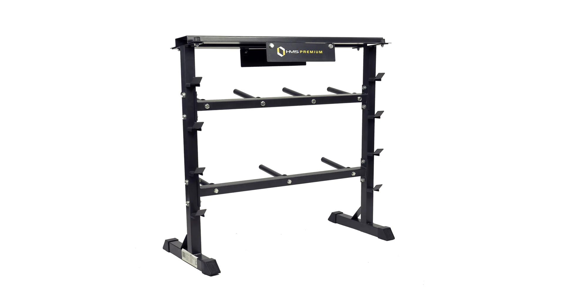 Stojan HMS Premium STR12 je navržen pro ukládání kotoučů a hřídelí. Stojan disponuje 4-mi pozicemi pro osy, 7-mi trny pro kotouče a horní plochou pro jednoruční činky. Odkládat na něj můžete náčiní do celkové hmotnosti 250 kg. STR12 je vyroben s ohledem na bezpečí uživatelů i odkládaného nářadí z kvalitních ocelových profilů.