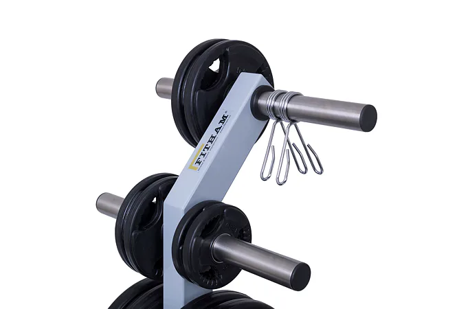 Profesionální stojan na kotouče FITHAM je určený pro kluby a komerční fitness centra. Slouží k odkládání kotoučů, trny jsou vyrobeny z nerezu, lak práškový, vypalovaný. Stojan je vybavený 8 trny pro uložení kotoučů s průměrem 50 mm s praktickým gumovým dorazem zabraňujícím poškození laku. Kvalitní povrchová úprava vypalovaným lakem zaručují dlouhou životnost stojanu. Stojan pomáhá udržet prostřední posilovny bezpečné a uklizené.
