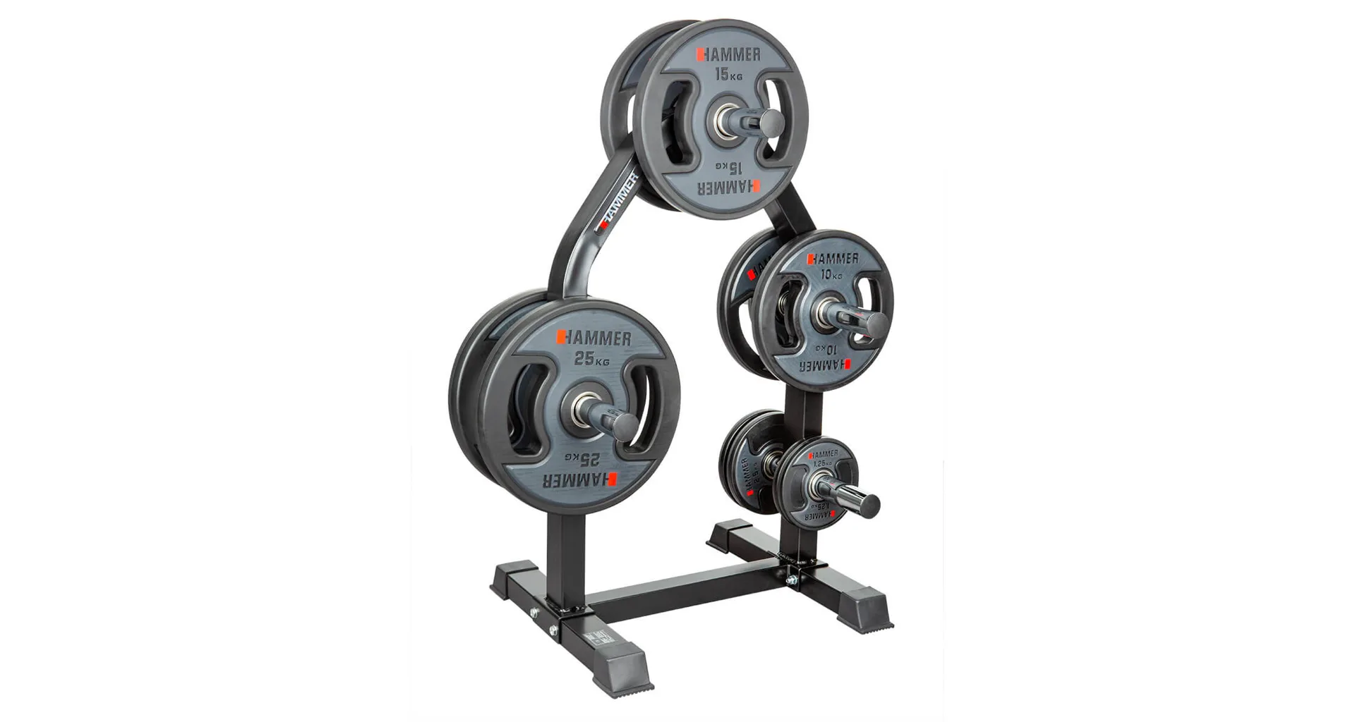Stojan na kotouče HAMMER Weight Disc Rack je určený pro olympijské kotouče s otvorem o průměru 50 mm. Nabízí 8 dostatečně prostorných odkládacích trnů pro různé velikosti kotoučů. Stojan má vysoce kvalitní a robustní konstrukci, je tak velmi stabilní a pomůže vám udržovat pořádek ve Vaši posilovně.
