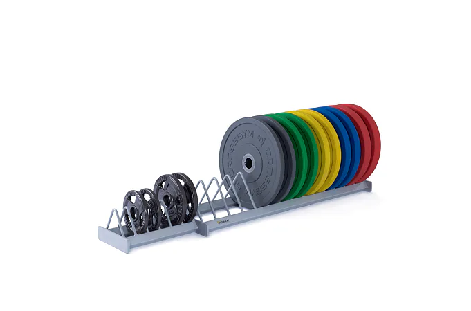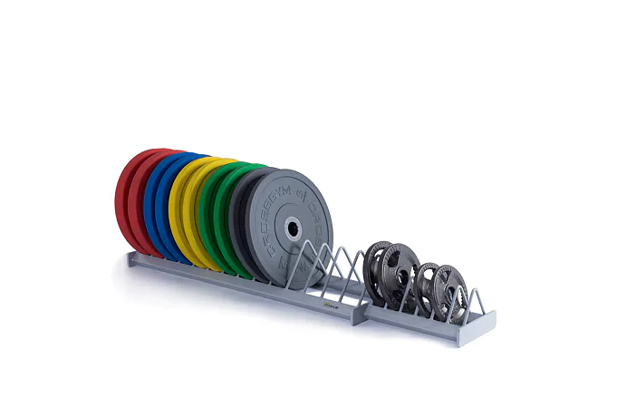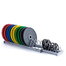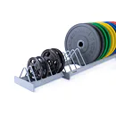 Praktický profesionální vodorovný stojan na kotouče s 14 + 6 poli je určený pro 20 kotoučů různých hmotností i velikostí. Stojan je vyroben tak, aby kotouče nepadaly a držely v napřímené poloze. Díky příčkám mezi kotouči se kotouče snadno vytahují a odkládají. Stojan je koncipován na olympijské kotouče s průměrem 450 mm, případně celogumové kotouče BUMPER.