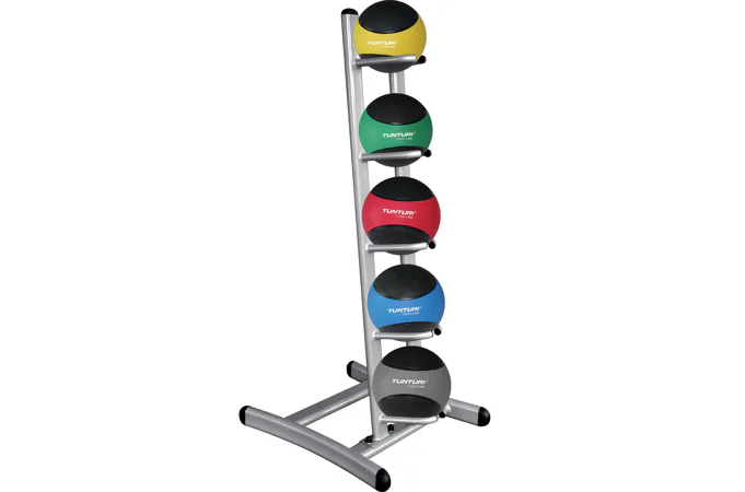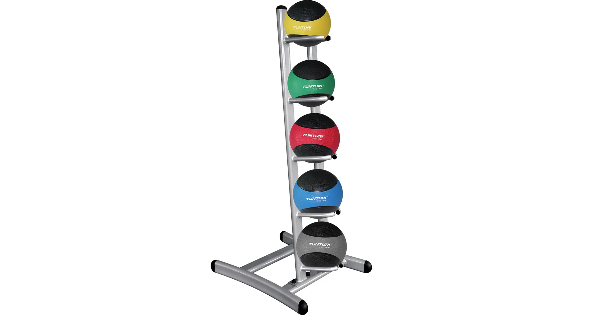 Stojan pro medicinbaly od značky TUNTURI nabízí úložný prostor pro 5 medicinbalů. Hlavní předností stojanu je opravdu pevná kovová konstrukce a výborné zpracování.