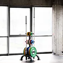Stojan STR26 od společnosti HMS je víc než jen obyčejný stojan na činky. Je vybaven šesti nezávislými trny a dvěma válci pro uložení os, umožňuje tak přehledné a bezpečné uložení tréninkového vybavení. S maximální nosností až 300 kg stojan zaručeně splní potřeby i těch nejpokročilejších uživatelů.