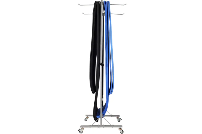 Stojan na podložky pojízdný TUNTURI Mat Transport Rack je ideální pomůckou pro zavěšení podložeks přídavnými oky. Díky tomuto stojanu mohou být podložky zavěšeny a nemusí být pracně rolovány. Háčky na podložky jsou nastavitelné, nosnost stojanu je do 20 kg. Velkým plusem jsou kolečka ve spodní části stojanu, díky kterým je velmi snadné přesunout stojan z jednoho bodu do druhého.