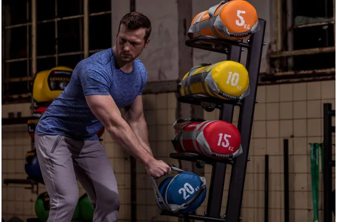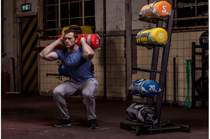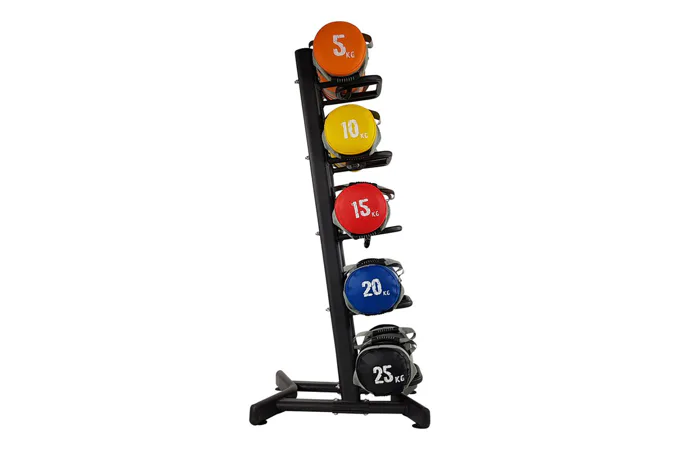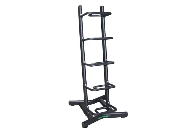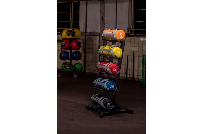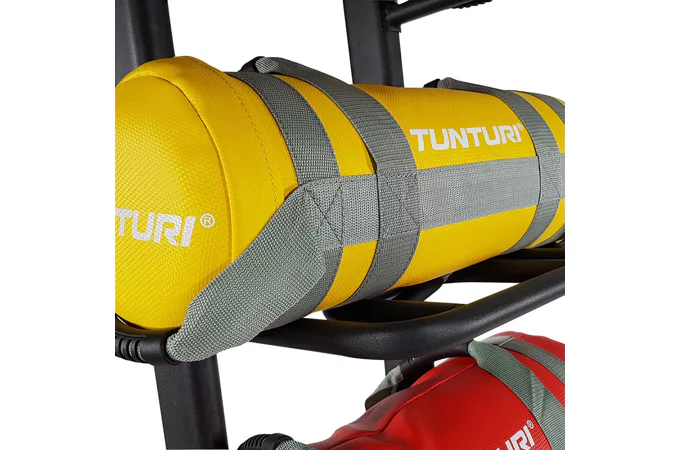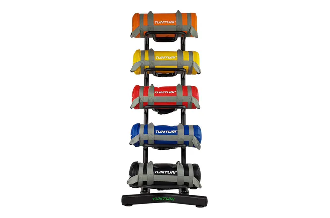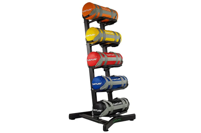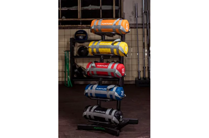 Stojan na posilovací vaky Strength Bag TUNTURI nabízí úložný prostor pro 5 zátěžových vaků. Hlavní předností stojanu je bezpečné uložení, úspora místa a přehledné uspořádání zátěžových vaků. Pevná, stabilní kovová konstrukce a výborné zpracování jsou již tradiční devizou značky TUNTURI.