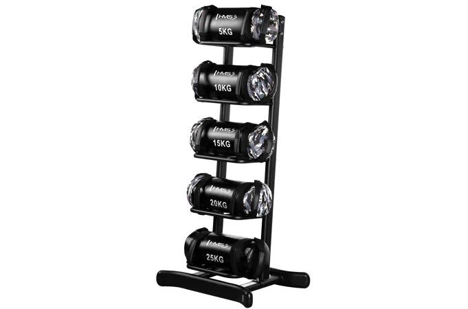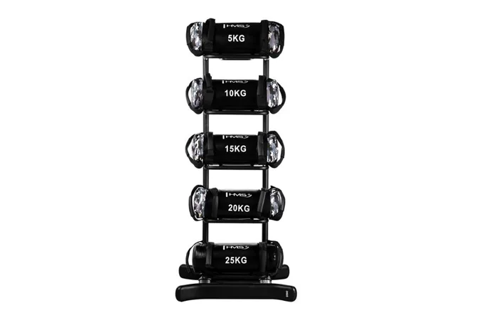 HMS STR42 je pevný a stabilní stojan, který umožňuje uložení 5 power bagů různých hmotností, čímž zajišťuje pořádek a úsporu místa. Díky své vysoké konstrukci je ideální volbou pro profesionální posilovny, fitness centra i domácí tréninkové zóny.