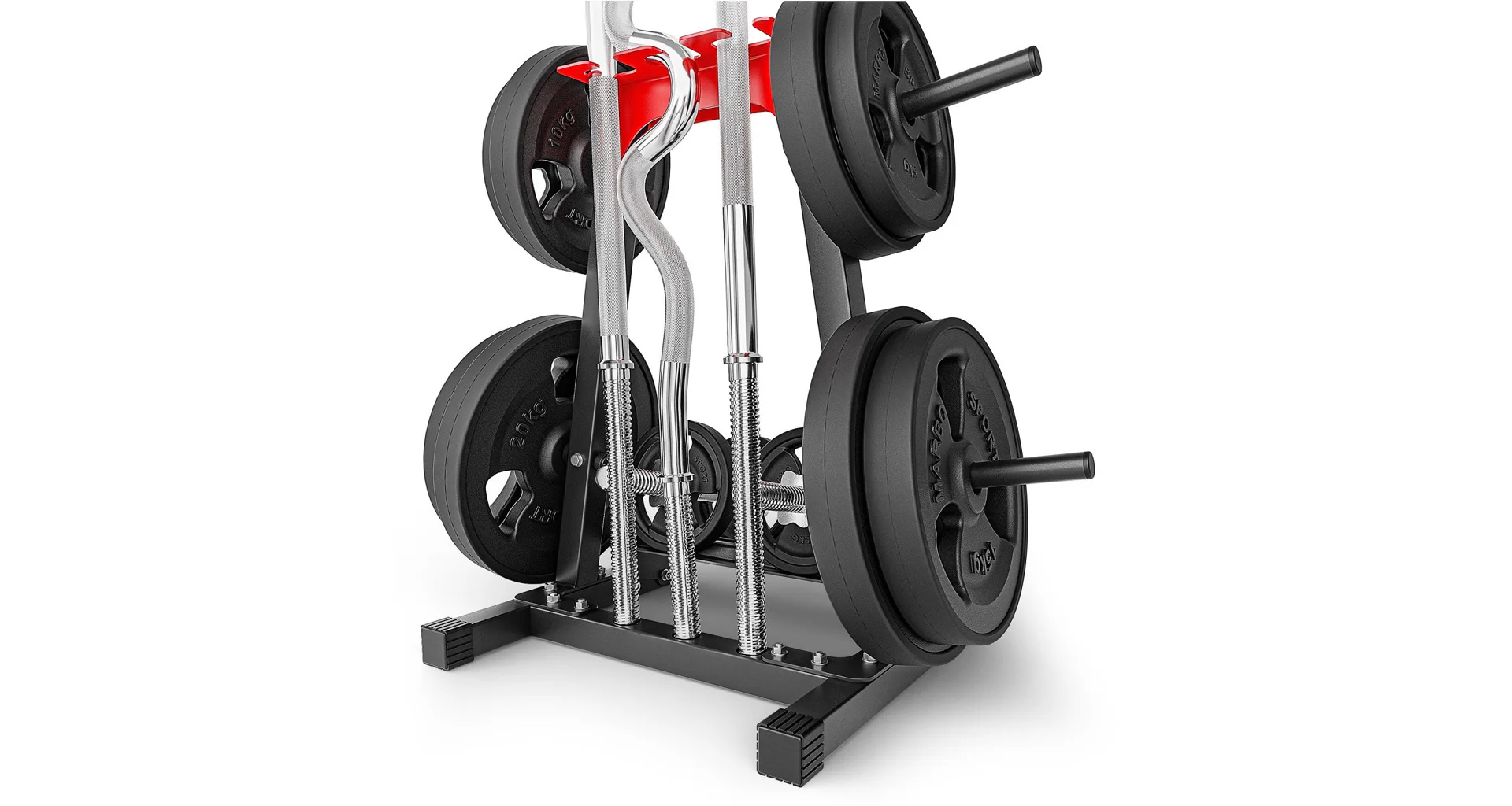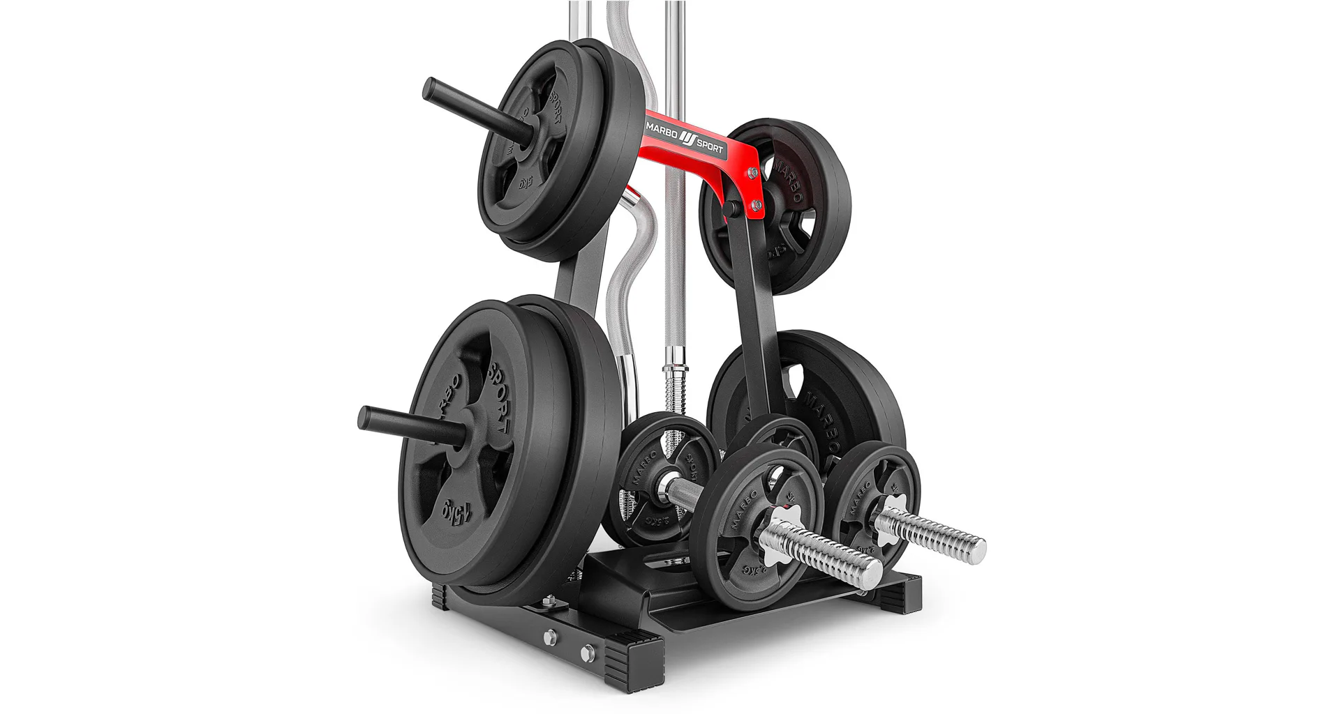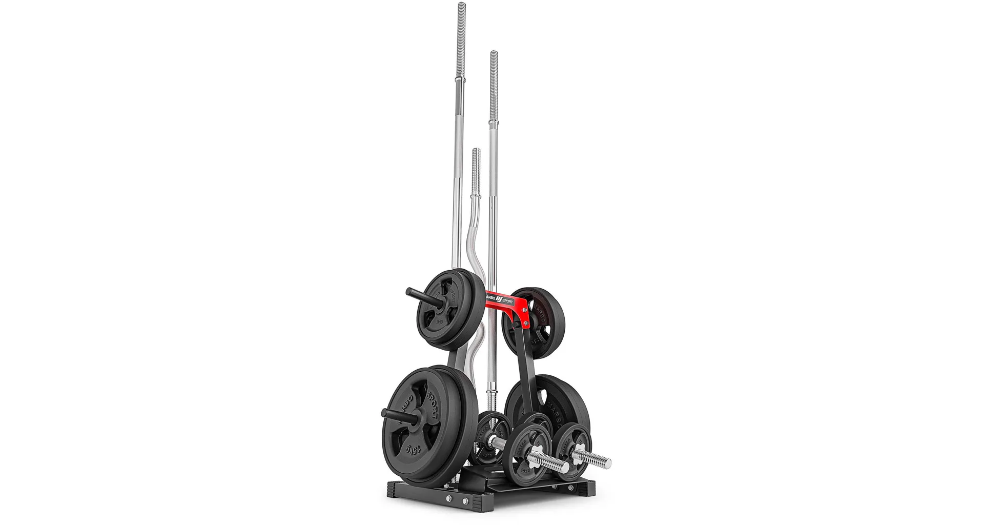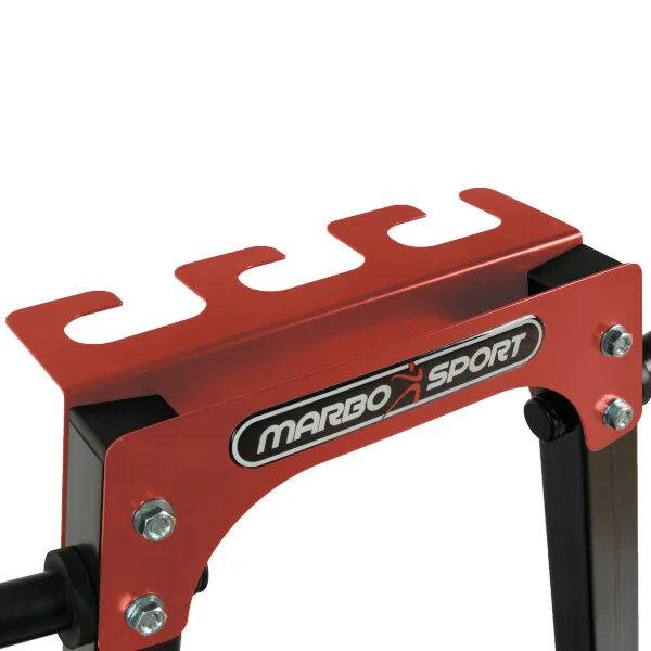 Stojan na závaží a osy Marbo MH-S207 vyniká svou ergonomií a spolu s jeho funkčností umožní, že se na tento stojan vejdou tyče, ale i závaží a jednoruční činky. Konstrukce profilů 40x40 mm dosahuje maximální zátěž 300 kg.