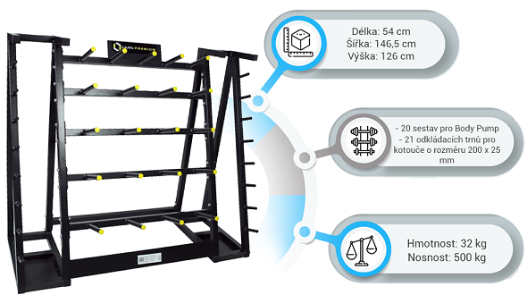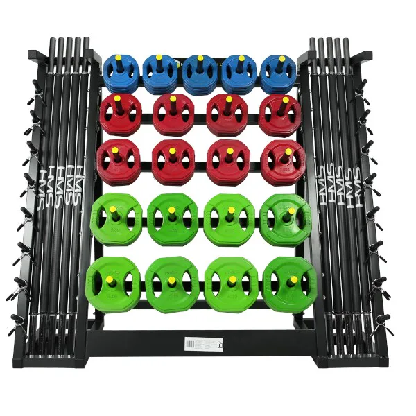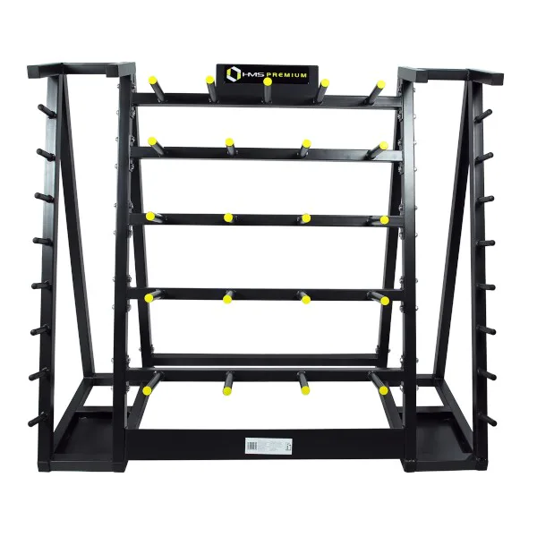 Stojan HMS Premium STR02 je navržen pro intuitivní ukládání činkových sestav pro Body Pump. Těchto sestav se na něj vejde až 20. Stojan je navíc vybaven trny pro odložení zámků, takže je už neztratíte. STR02 je vyroben s ohledem na bezpečí uživatelů i odkládaného nářadí.