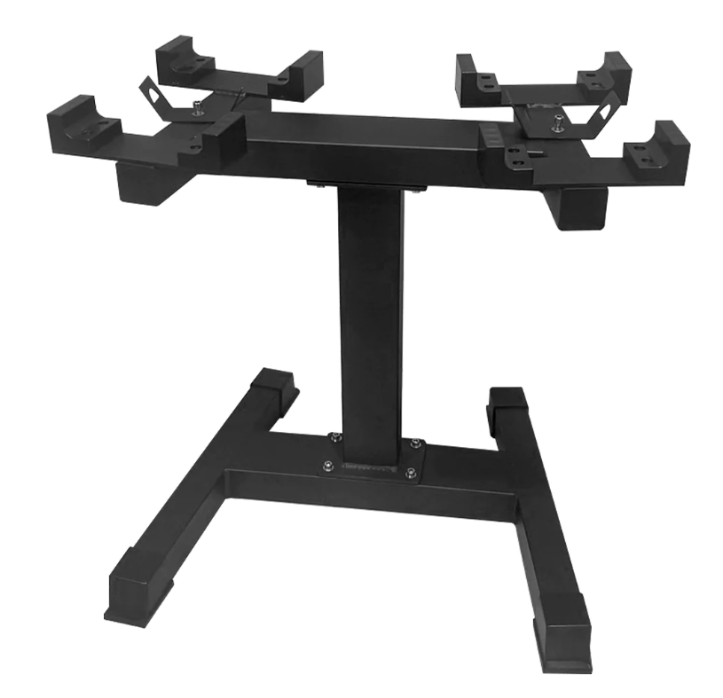 Stojan STRENGTHSYSTEM Adjustable Dumbbell Stand pro jednoruční nastavitelné činky. Tento stojan je kompatibilní se všemi nastavitelnými jednoručními činkami STRENGTHSYSTEM. Jeho výhoda je přehledné skladování/odložení jednoručních činek, praktická výška pro snadné zvednutí činek a stabilní konstrukce.