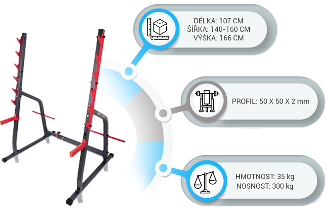 Dobrý den, uvažuji o koupi nového stojanu a tento vypadá poměrně zdařile a cena je rovněž přívětivá. Měl bych tedy dotaz, zda stojan vyhovuje jak pro bench-press, tak i dřep vzhledem k rozestupům zarážek. Měřím 175 cm. A nosnost 300 kg se vztahuje i na jistící zarážky? A nakonec, zda se podle vás jedná o kvalitní výrobek nebo byste mi doporučil jiný stojan pro univerzální použití. Předem děkuji za odpověď.