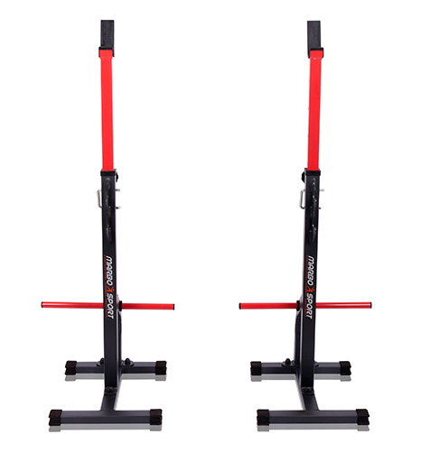 Stojany pod činku MARBO MS-S108 patří mezi základní a praktické stojany k posilovacím lavicím do domácího prostředí. Jsou ideální volbou pro ty, kteří hledají trvanlivé a cenově dostupné stojany. Díky nastavení výšky (rozsah 99-169 cm), Stojany jsou nenáročné na přemistění a manipulaci, lze je používat buď samostaně nebo externě k lavičkám. Promyšlená konstrukce MARBO MS-S108 zajišťuje stabilitu a bezpečnost při tréninku. Komfort zajišťují pogumované spodní konce pro lepší stabilitu.