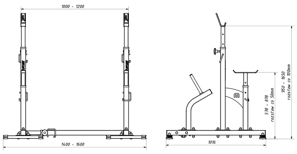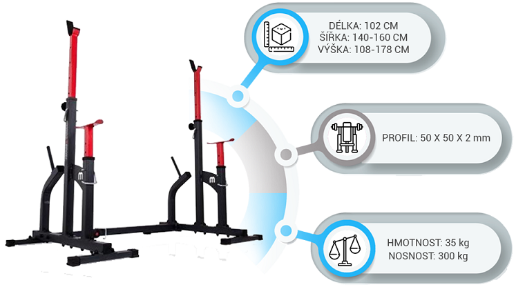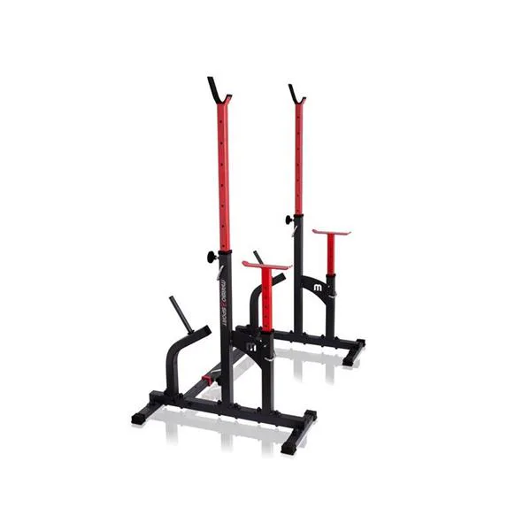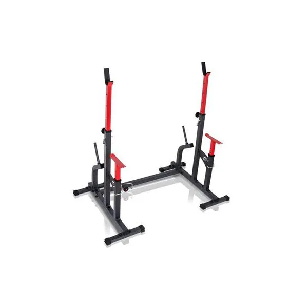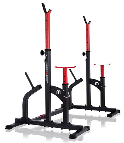 Kombinované stojany s jištěním známé značky MARBO MS-S104. Stojany jsou vyrobeny z velmi kvalitní oceli. Profil konstrukce je 50x50x2mm. Výšku lze nastavit do 8 stupňů a jištění do 6 stupňů.Navíc díky tří stupňové regulaci šířky tohoto zařízení, ideálně dopasujete délku Vaší činky. Maximální zátěž na stojan MARBO MS-S104 je 350 kg.
