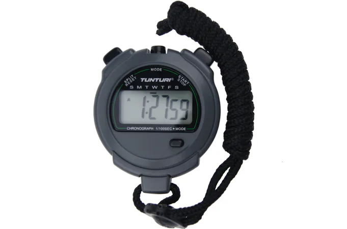 Stopky - 2 paměti TUNTURI s digitálním ztvárněním času, dne, měsíce, hodin, minut a sekund. Kromě toho má stopky velký displej a dvě paměti pro zastavené časy. Voděodolné provedení.