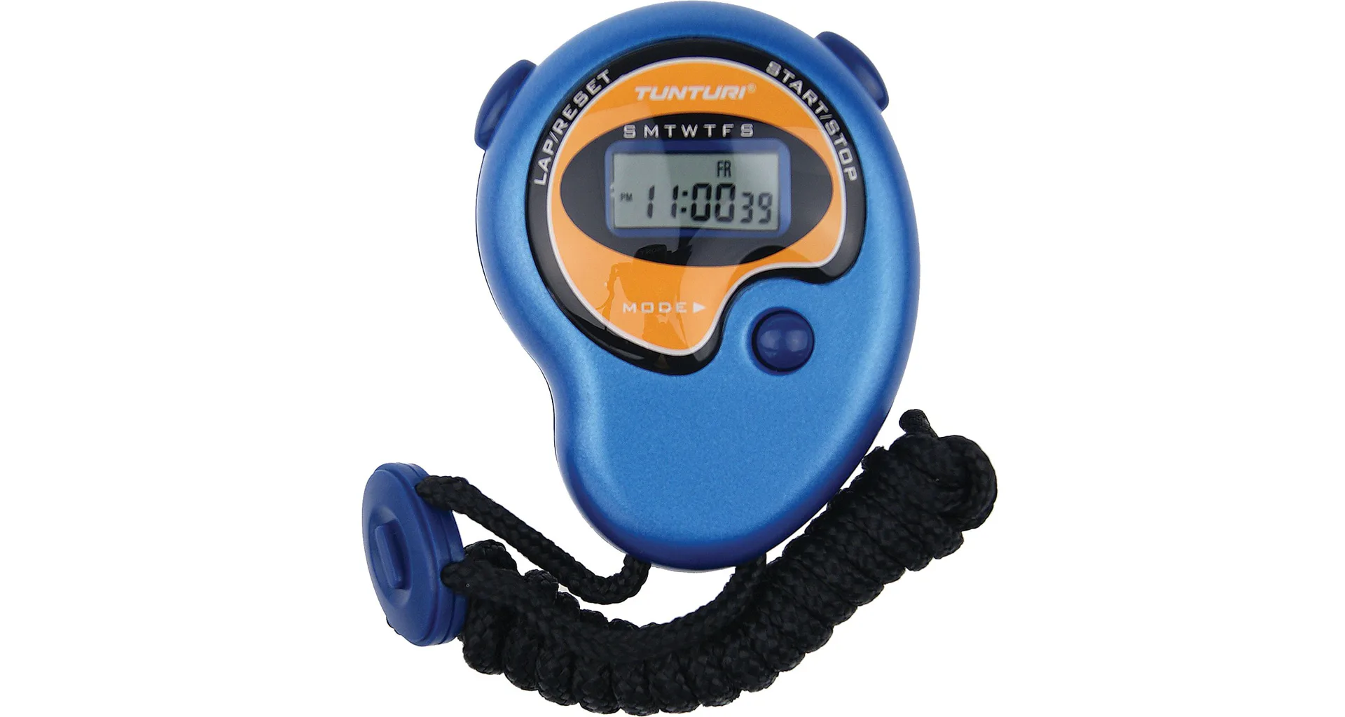 Stopky TUNTURI s přesností měření na 1/100 vteřiny. Digitální stopky mají mnoho funkcí a maximální stopovaný čas 23 h, 59 min, 59 sec.